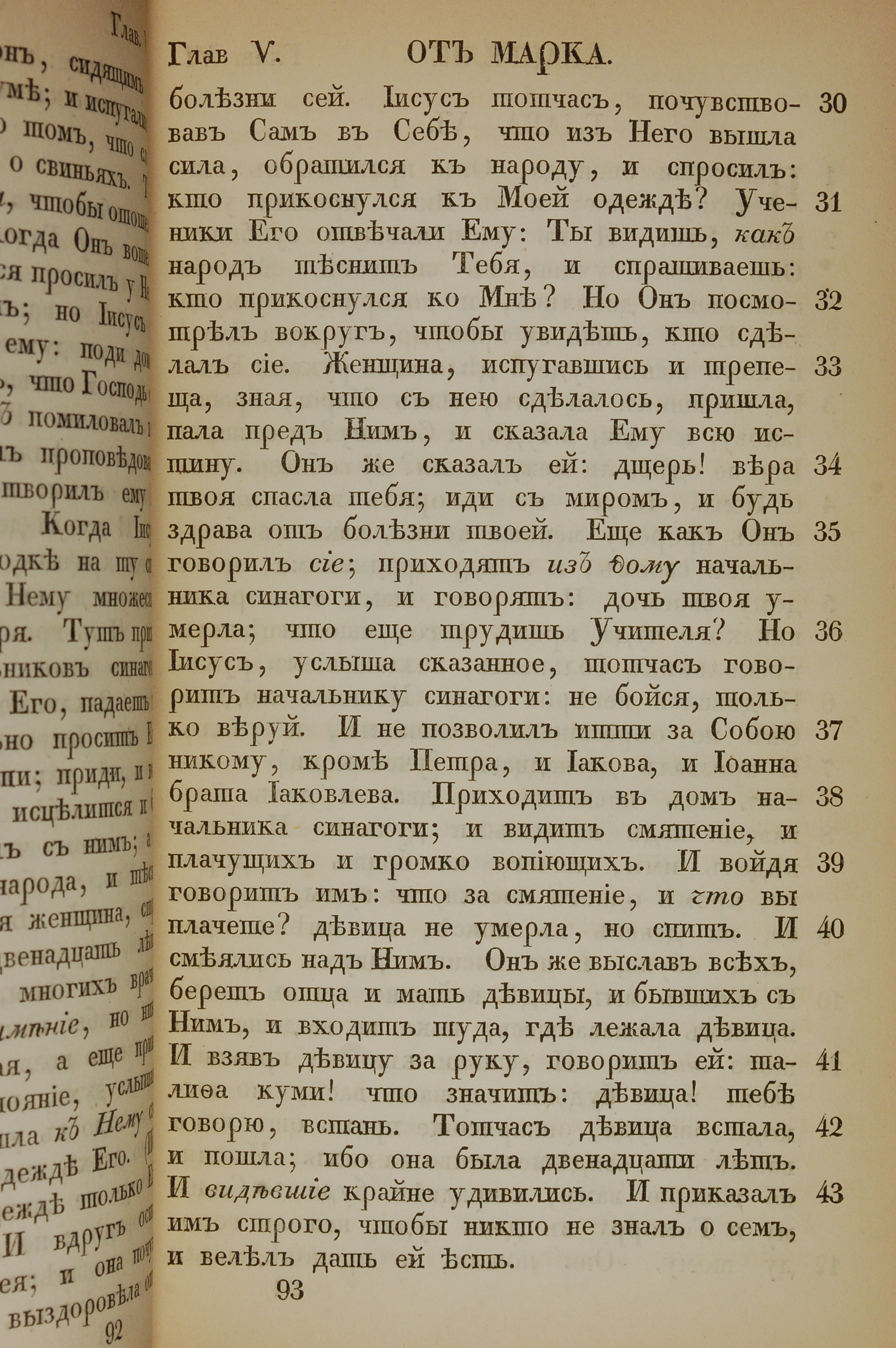 1855年俄文新约全书 马可福音 5 章 30 节到 5 章 43 节