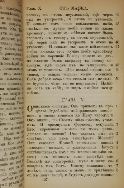 1855年俄文新约全书 马可福音 9 章 44 节到 10 章 8 节