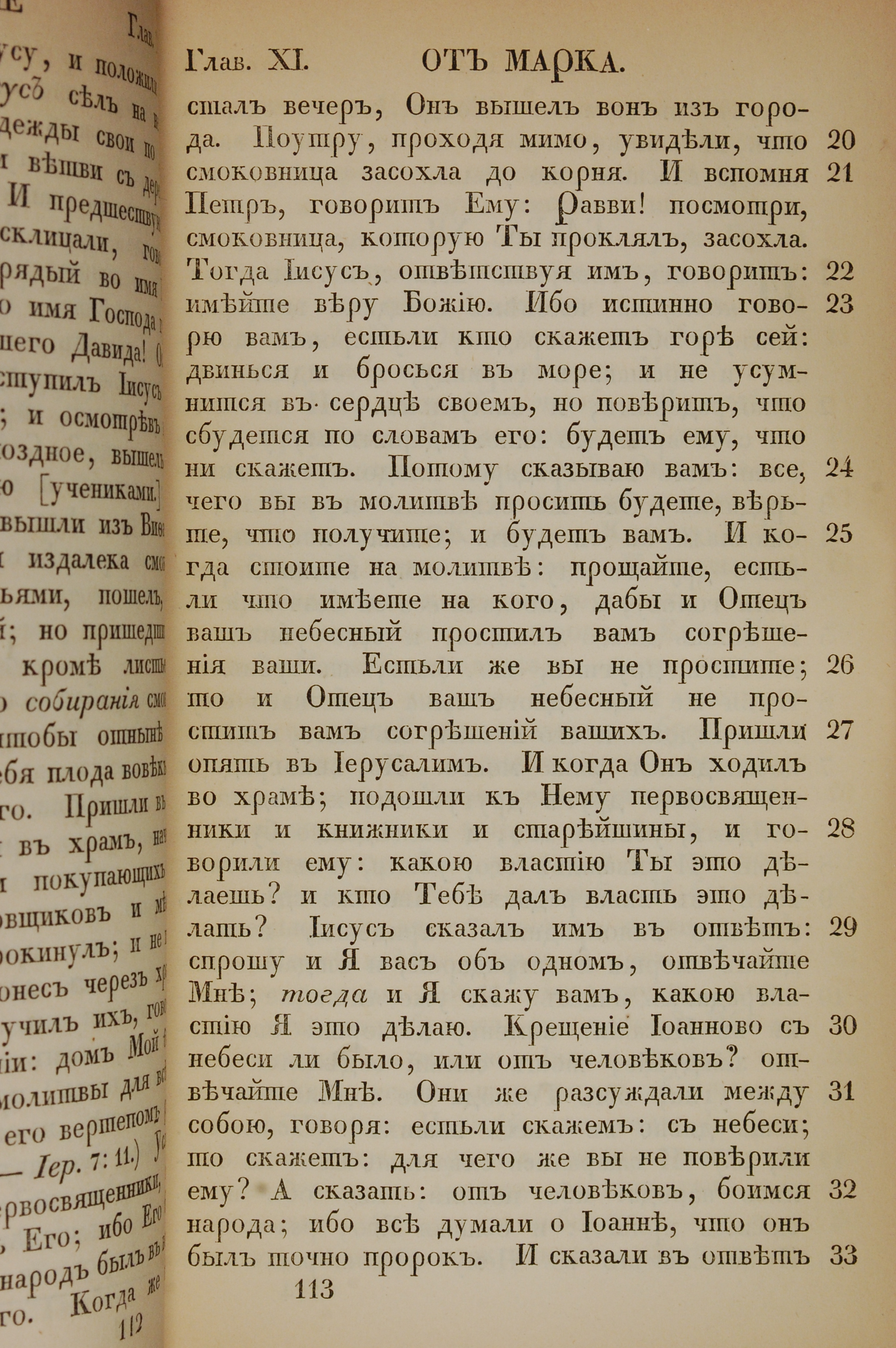 1855年俄文新约全书 马可福音 11 章 20 节到 11 章 33 节