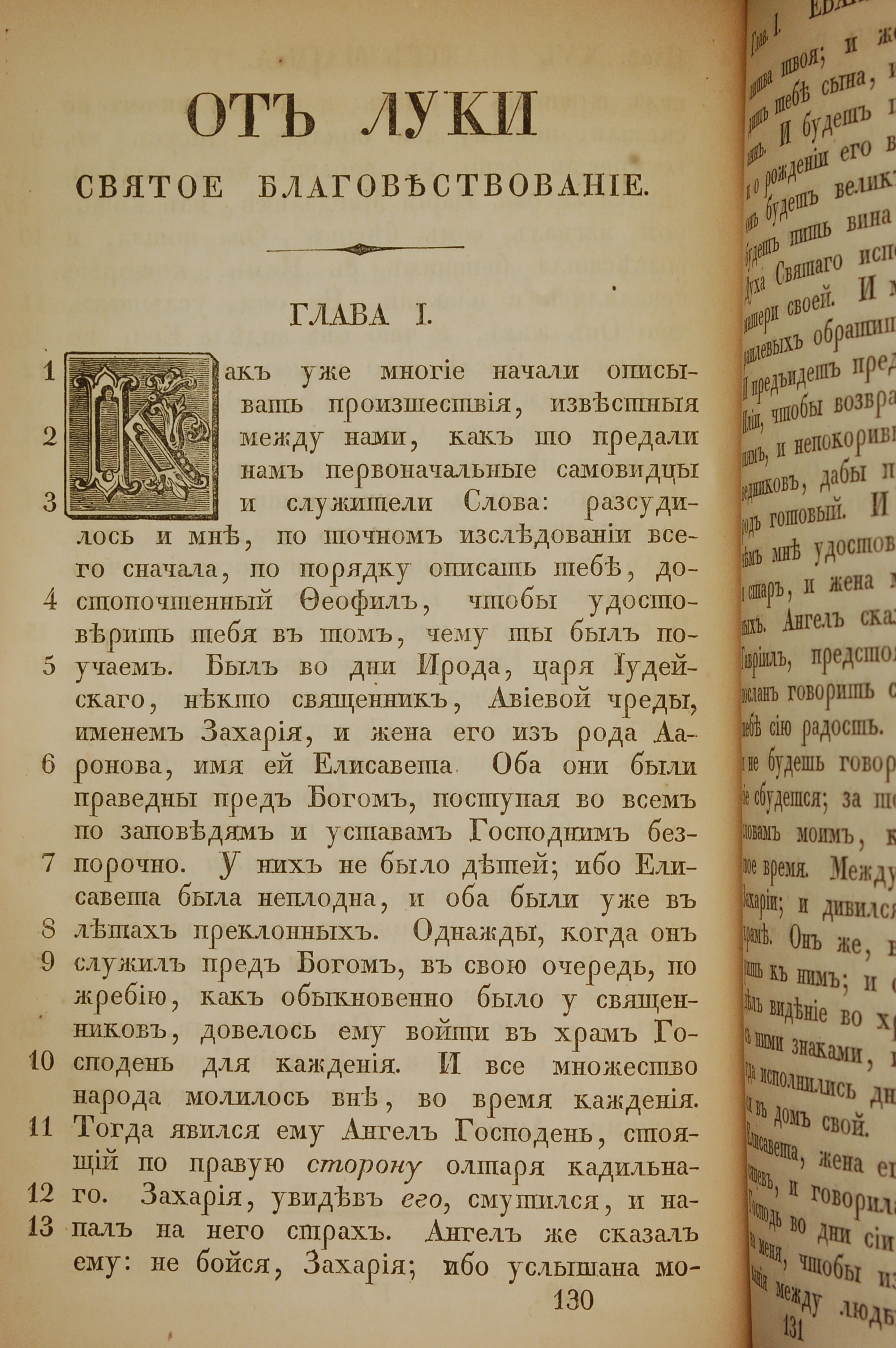 1855年俄文新约全书 路加福音 1 章 1 节到 1 章 13 节