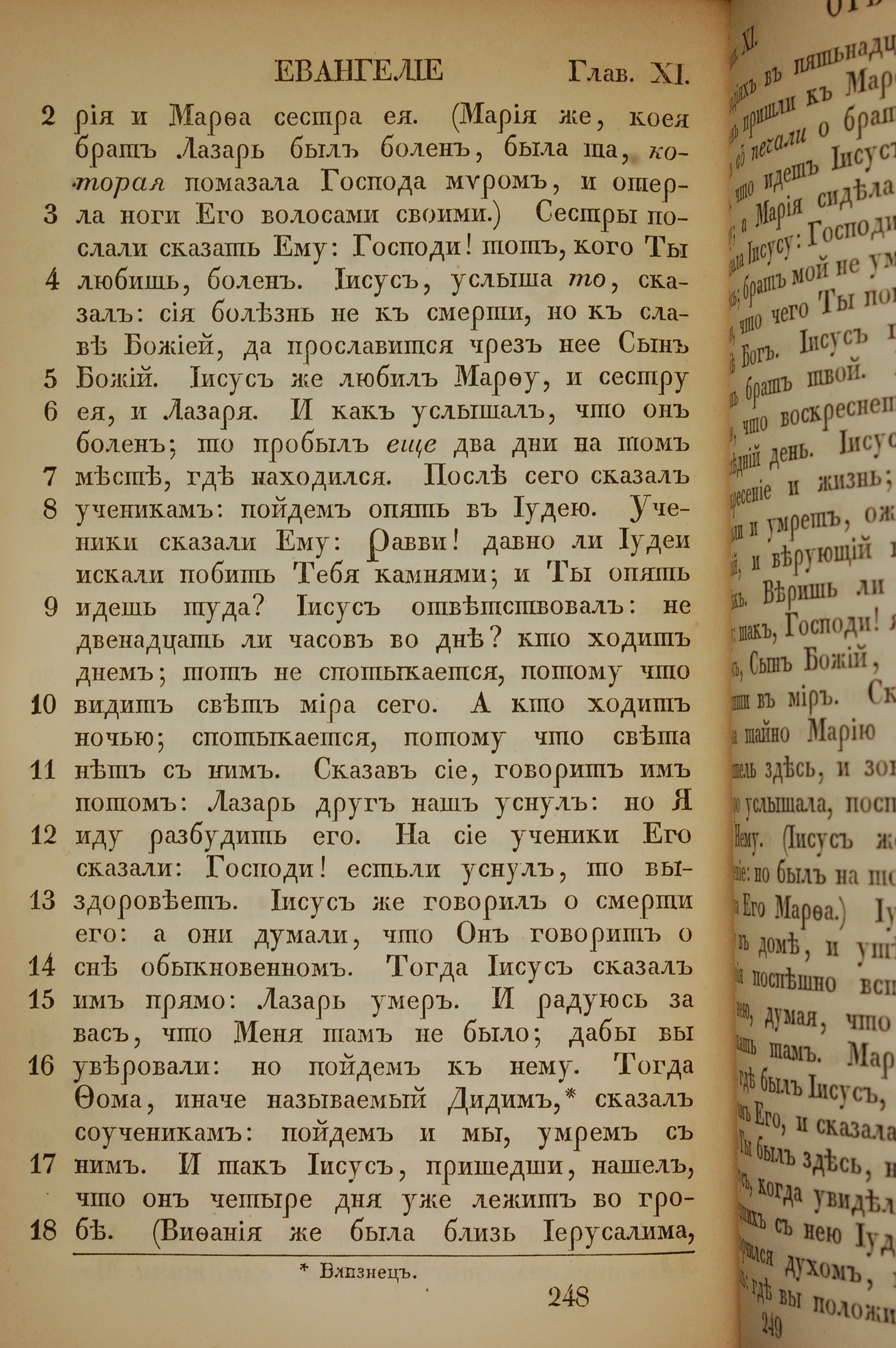 1855年俄文新约全书 约翰福音 11 章 2 节到 11 章 18 节