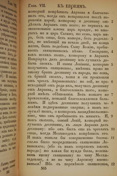 1855年俄文新约全书 希伯来书 7 章 2 节到 7 章 12 节