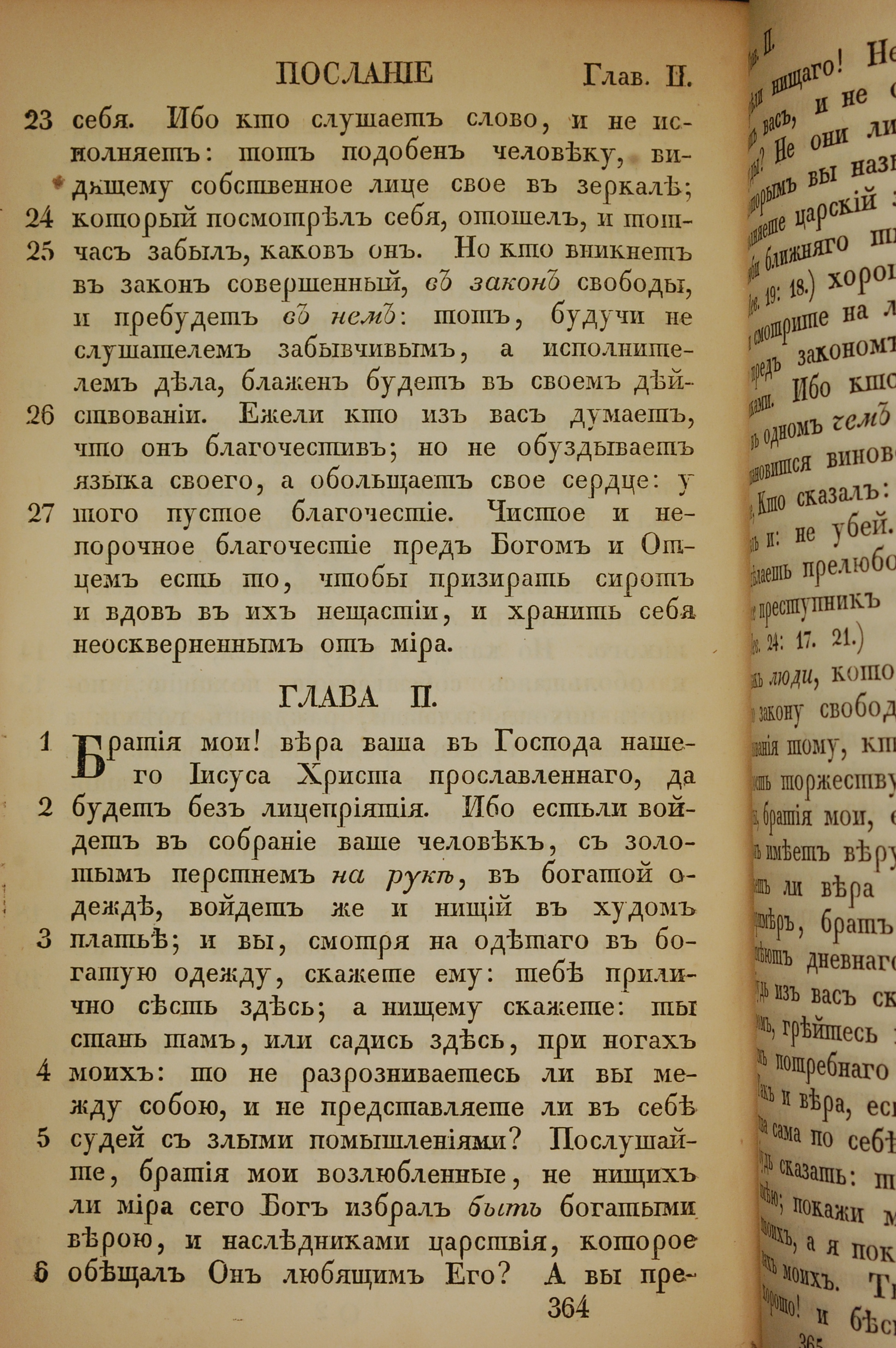 1855年俄文新约全书 雅各书 1 章 23 节到 2 章 6 节