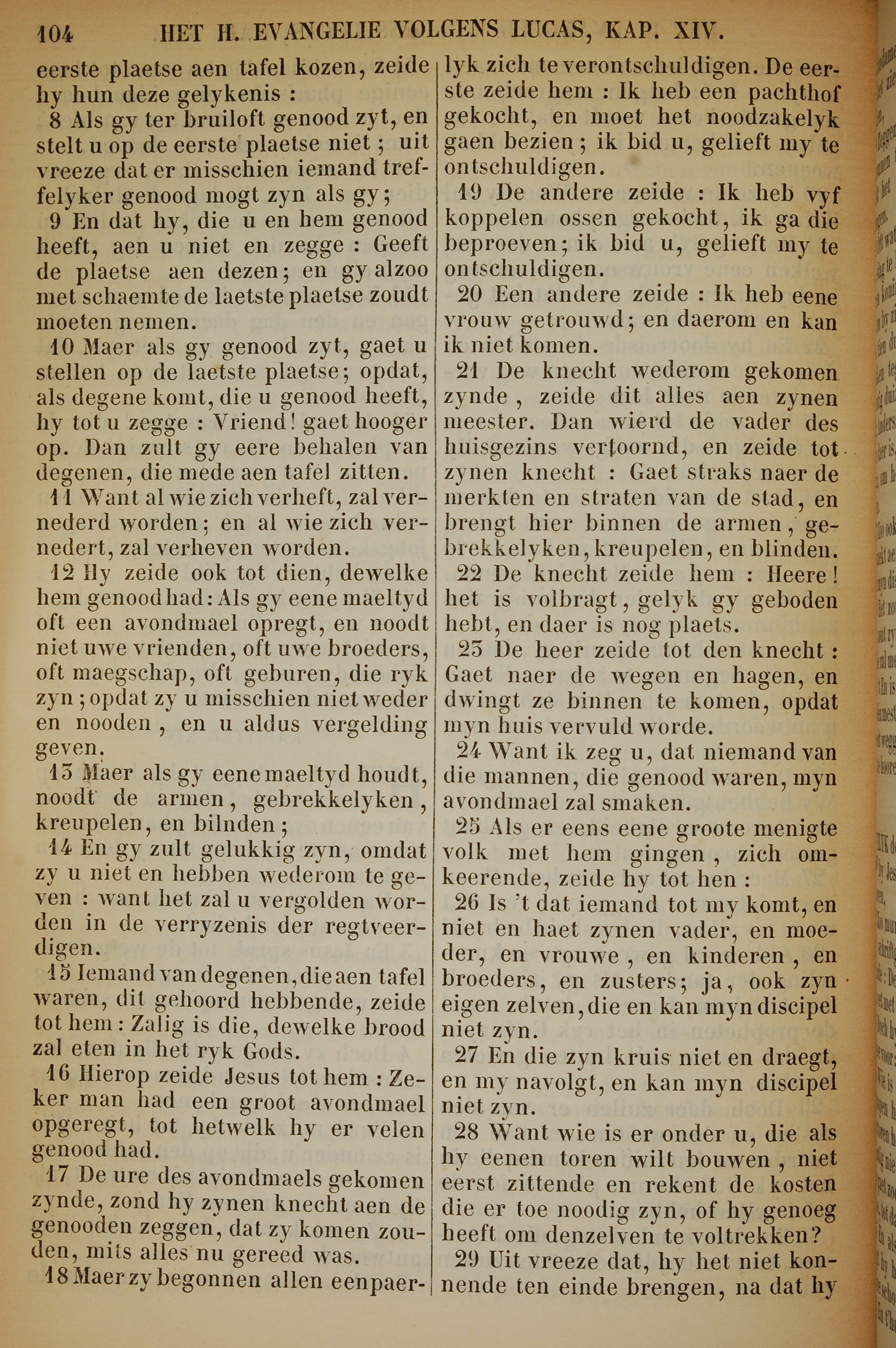 1717年荷兰文新约全书 路加福音 14 章 8 节到 14 章 29 节