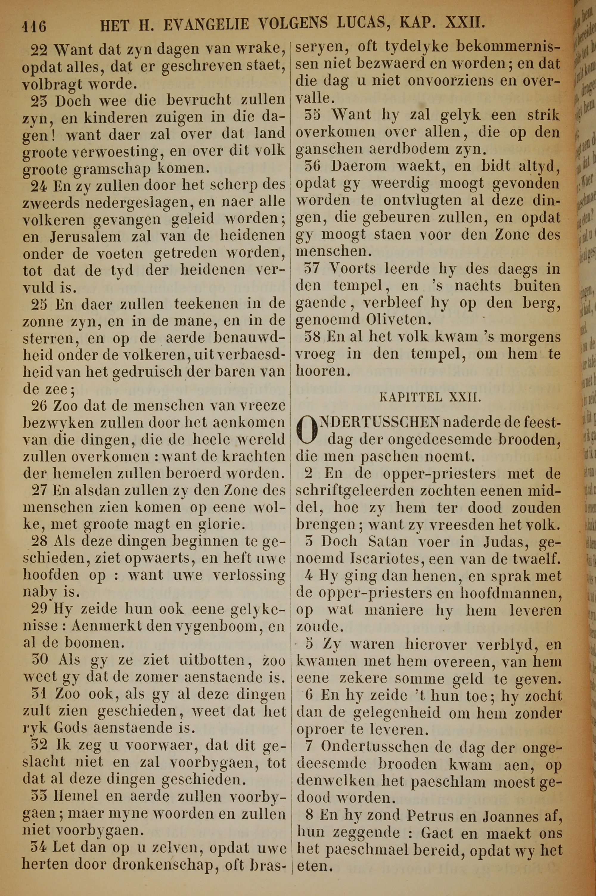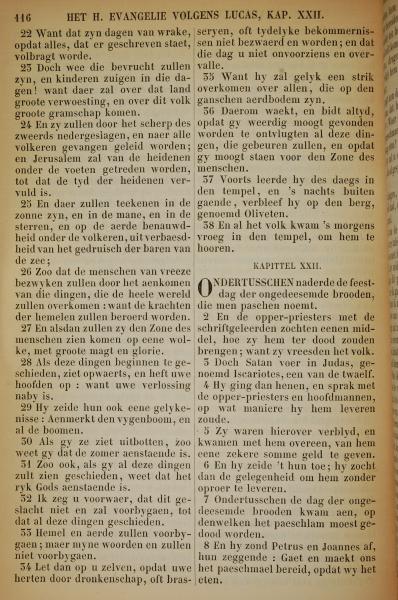 1717年荷兰文新约全书 路加福音 21 章 22 节到 22 章 8 节