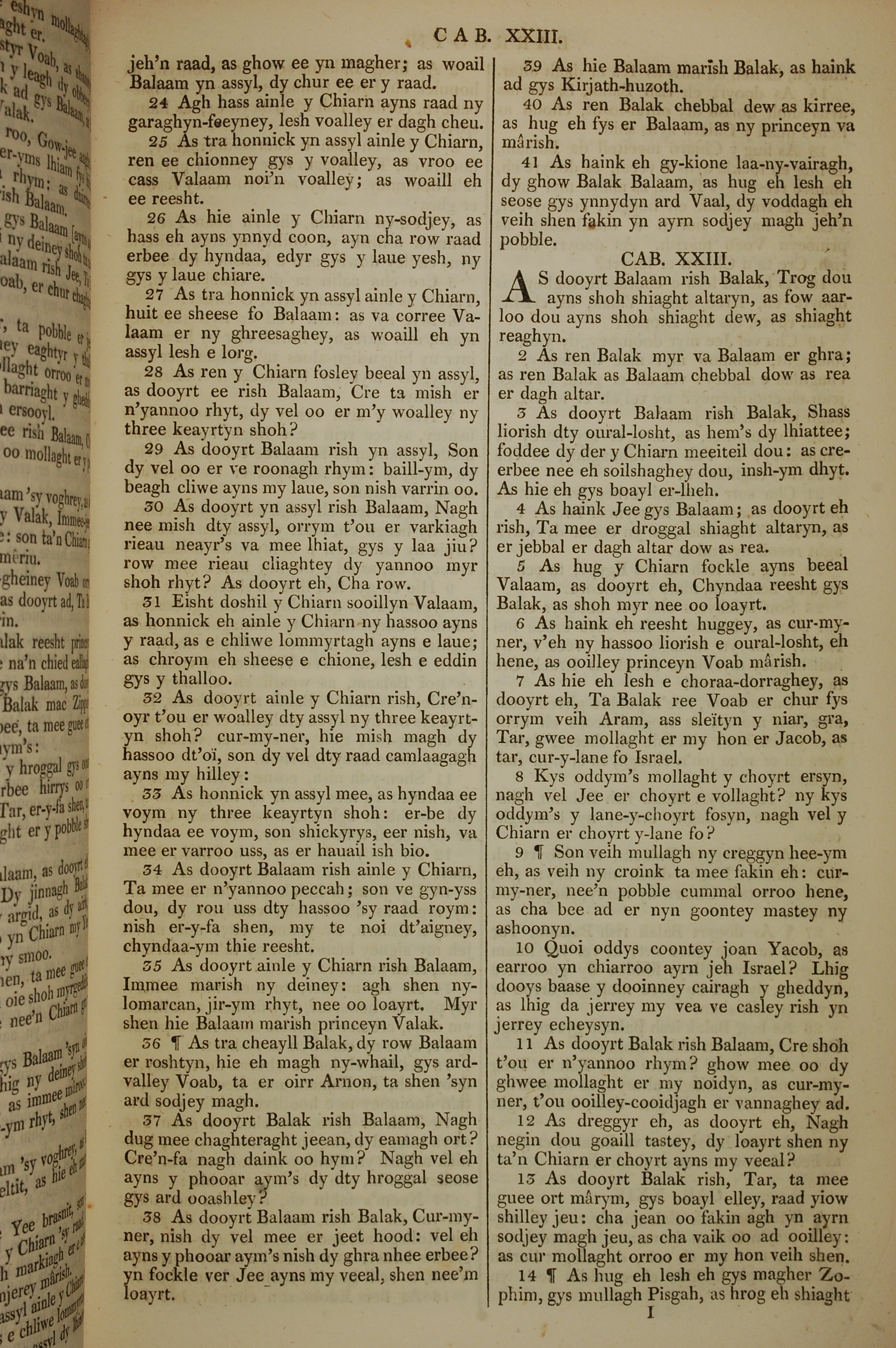 1819年曼岛语圣经 民数记 22 章 24 节到 23 章 14 节