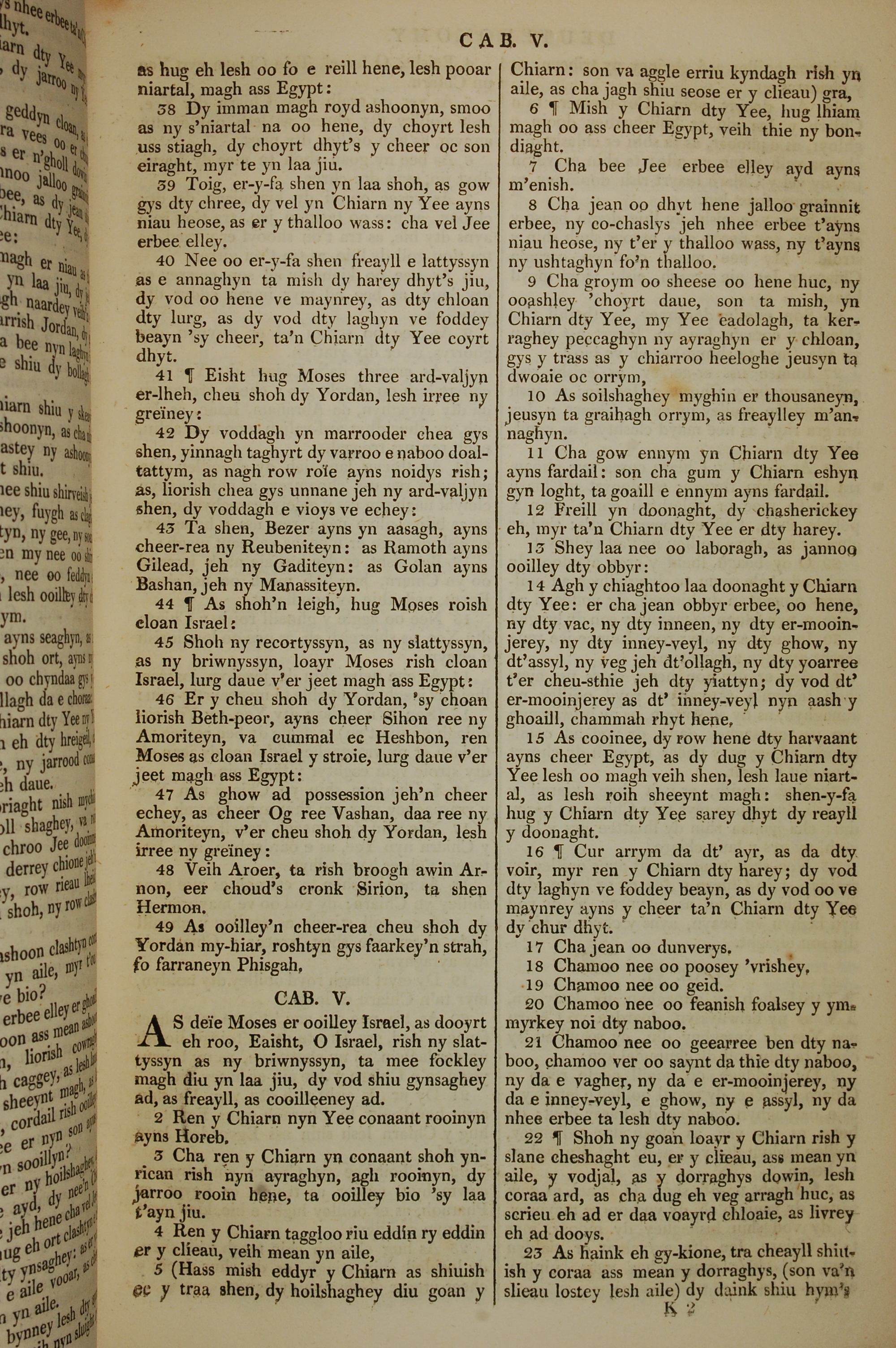 1819年曼岛语圣经 申命记 4 章 38 节到 5 章 23 节