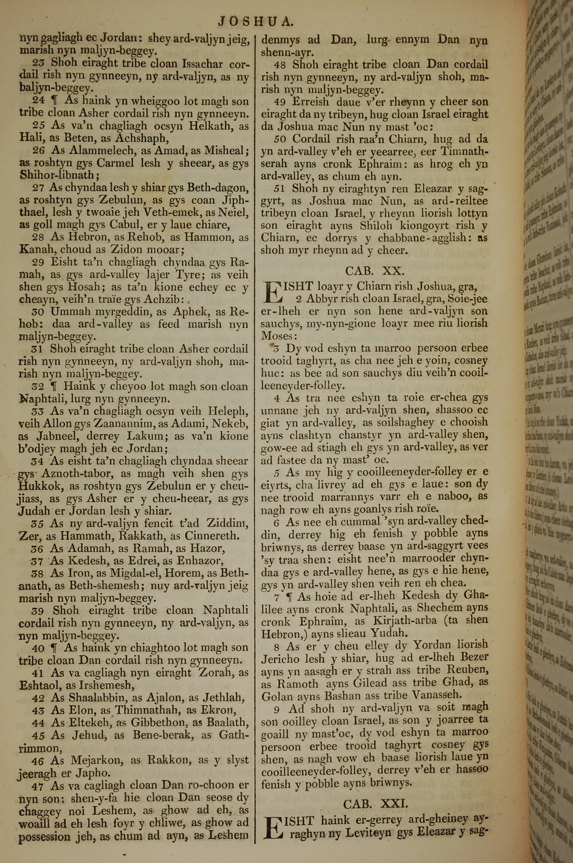 1819年曼岛语圣经 约书亚记 19 章 23 节到 21 章 1 节