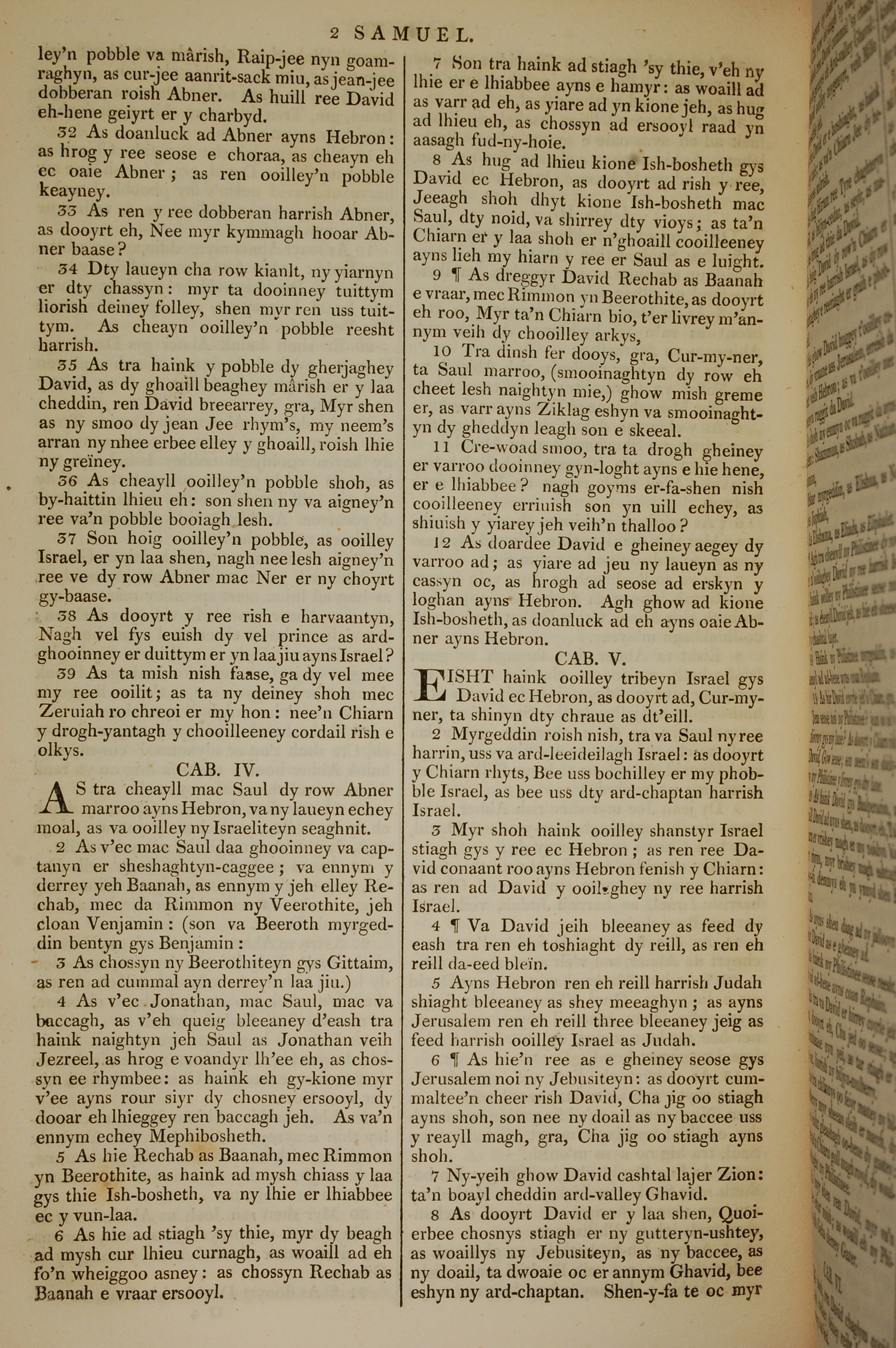 1819年曼岛语圣经 撒母耳记下 3 章 32 节到 5 章 8 节