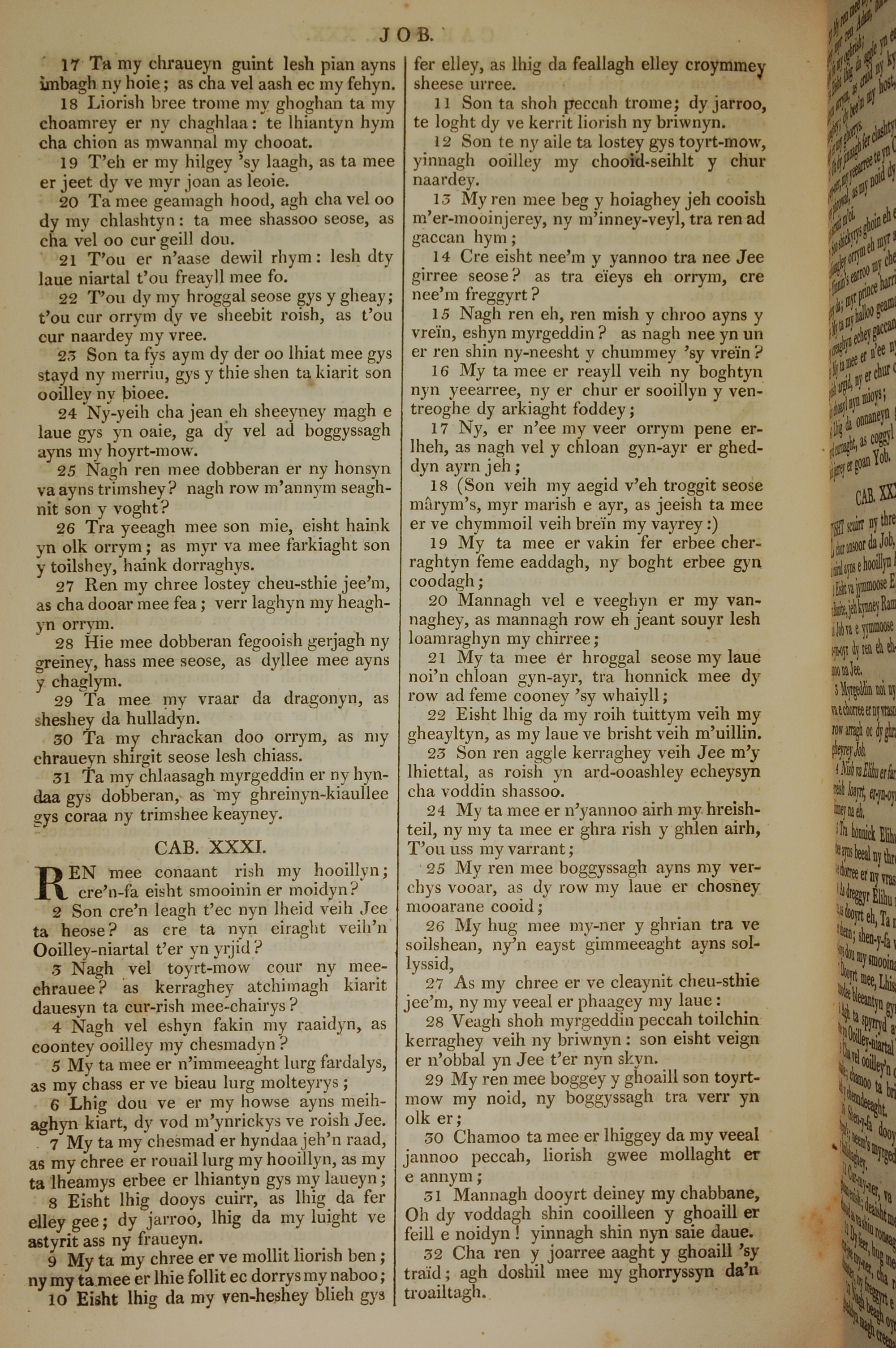1819年曼岛语圣经 约伯记 30 章 17 节到 31 章 32 节
