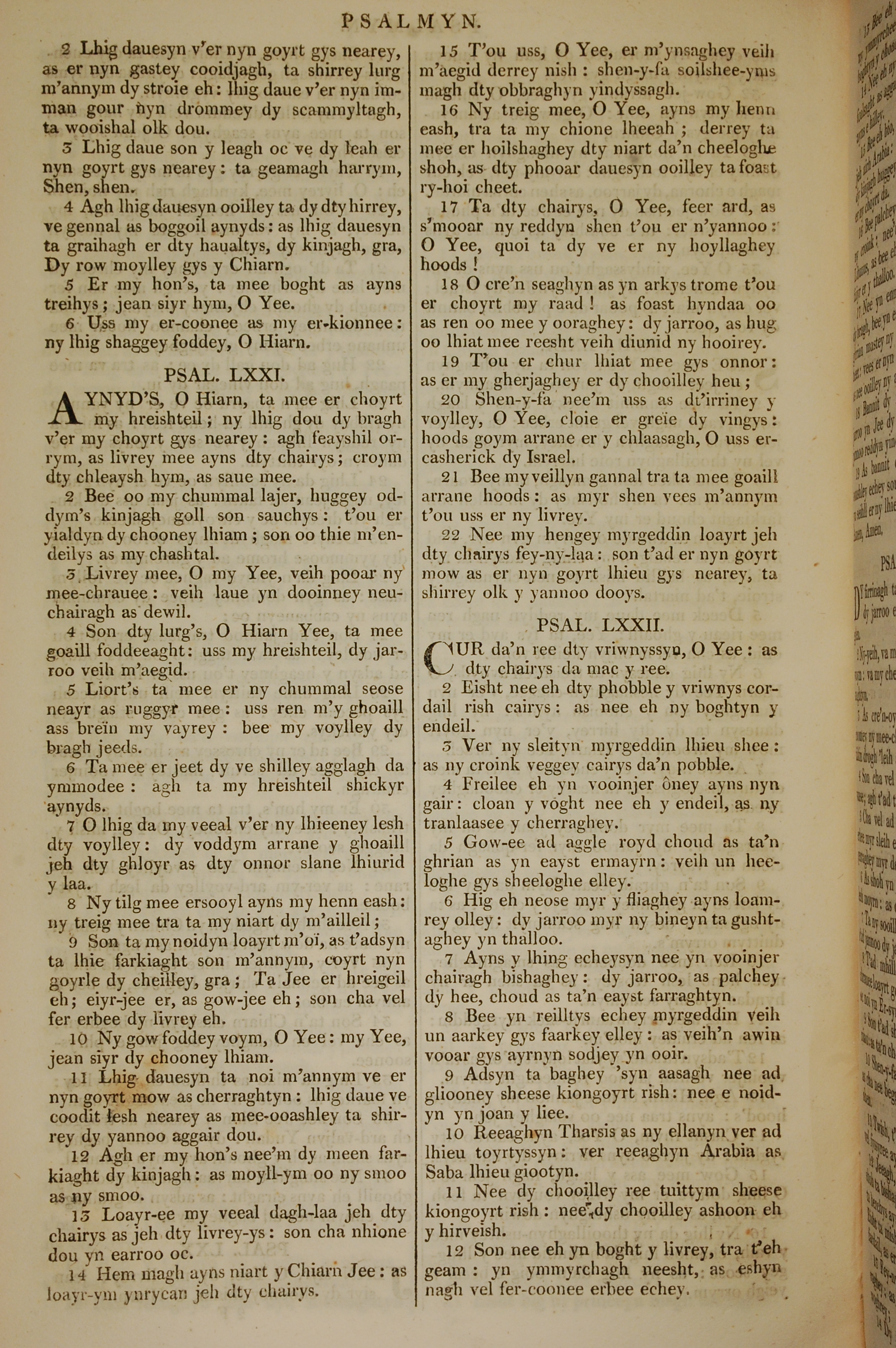 1819年曼岛语圣经 诗篇 70 章 2 节到 72 章 12 节