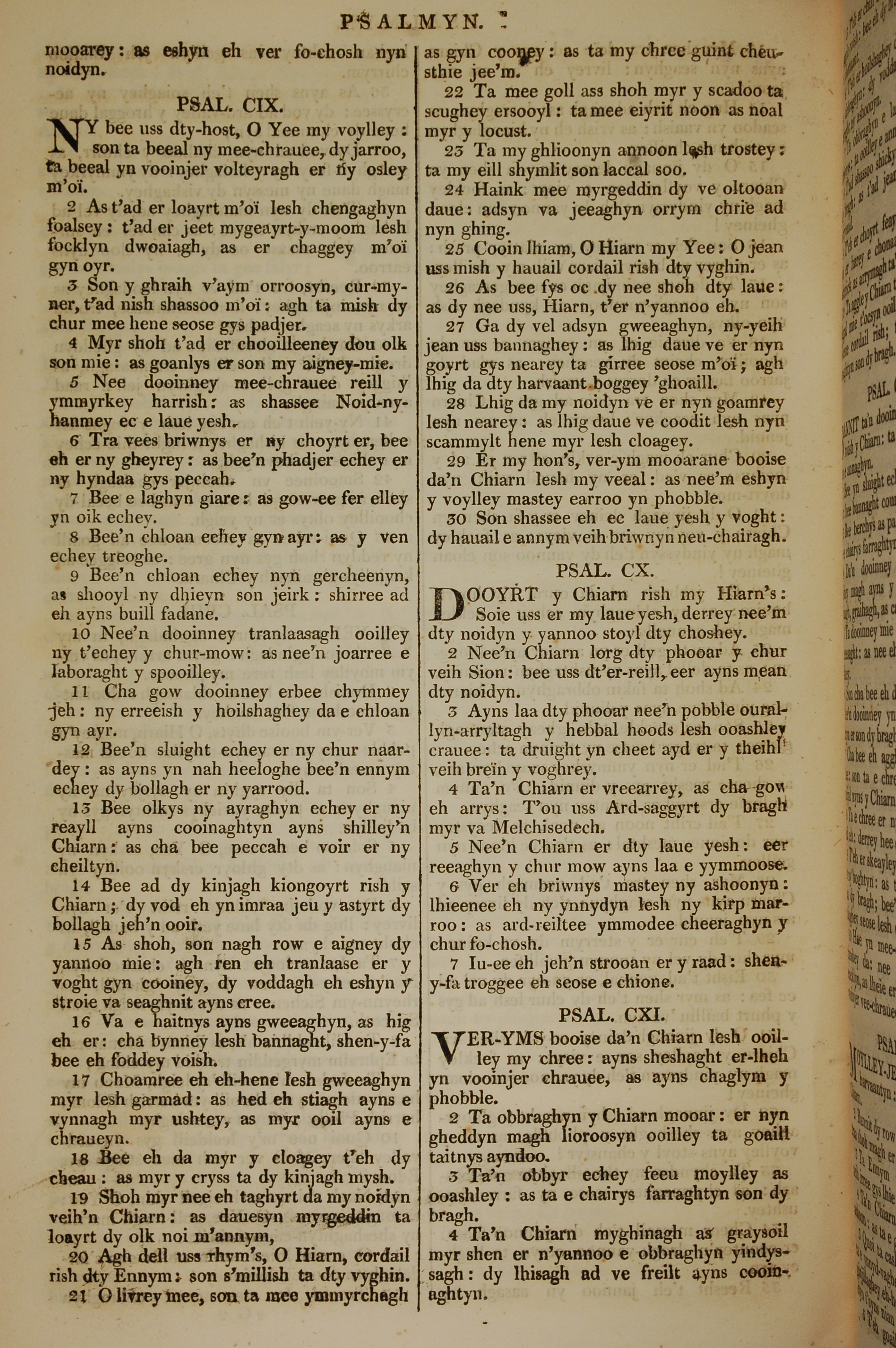 1819年曼岛语圣经 诗篇 109 章 1 节到 111 章 4 节