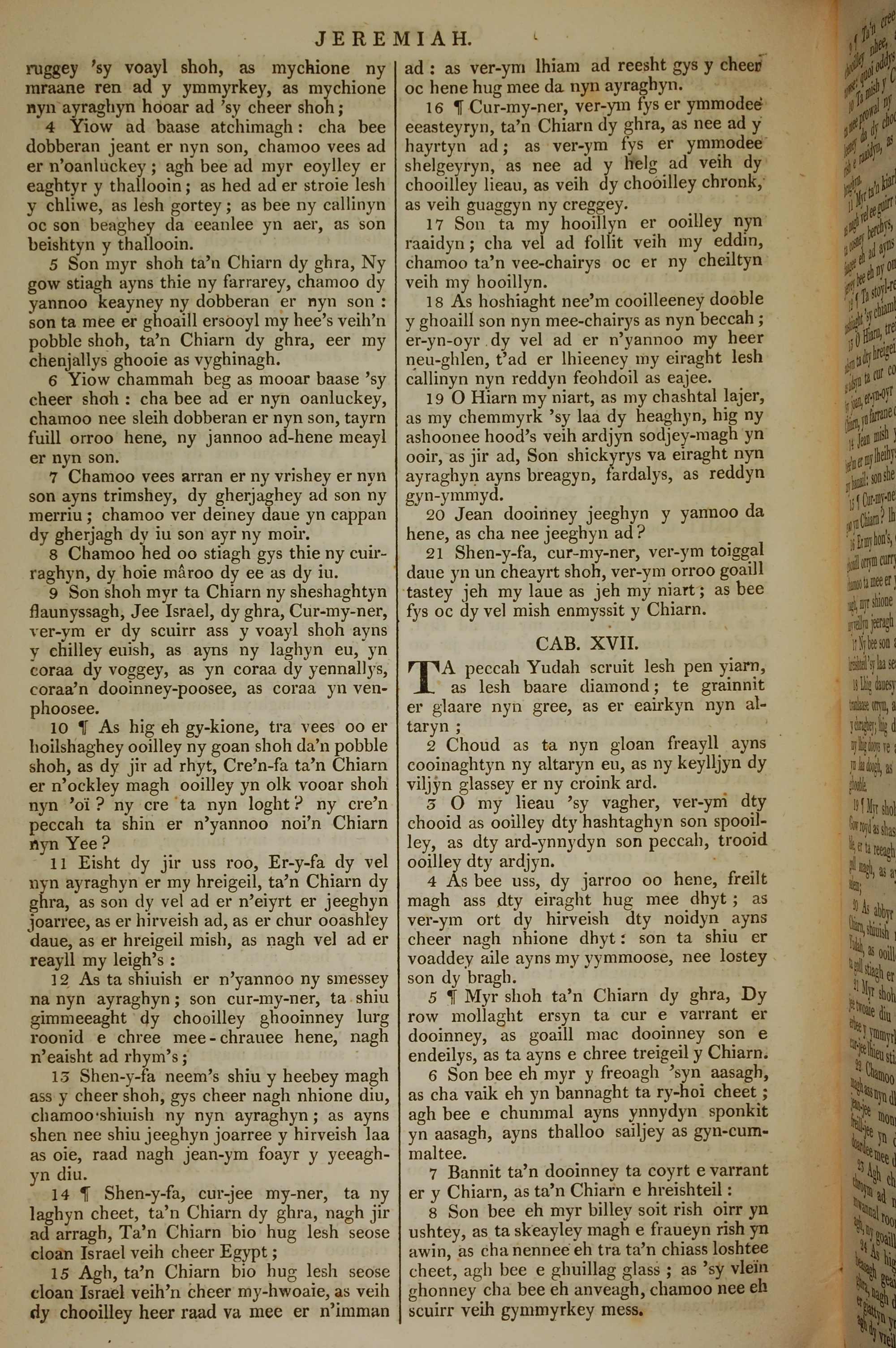 1819年曼岛语圣经 耶利米书 16 章 4 节到 17 章 8 节