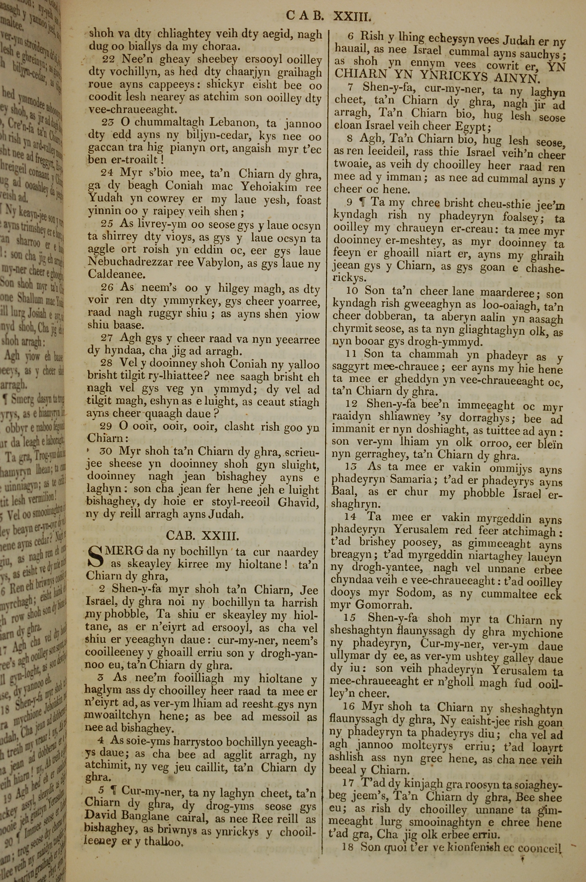 1819年曼岛语圣经 耶利米书 22 章 22 节到 23 章 18 节