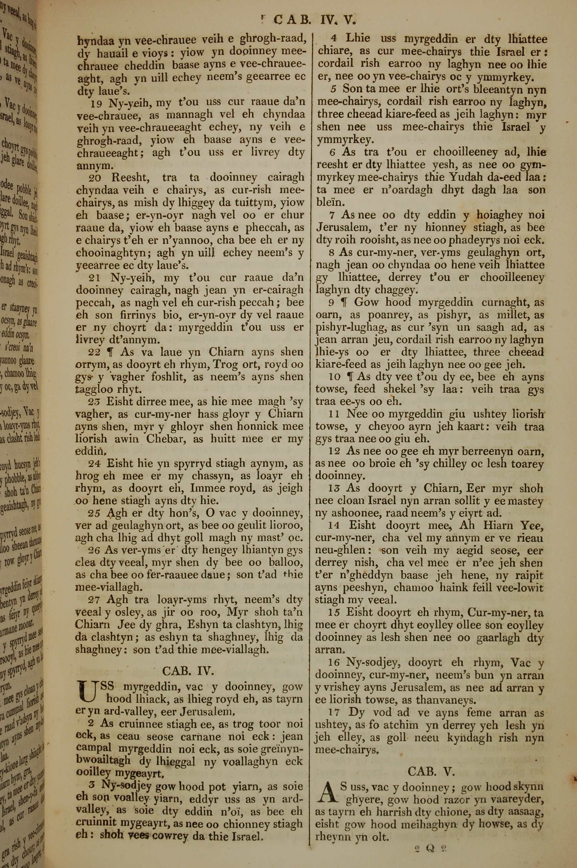 1819年曼岛语圣经 以西结书 3 章 19 节到 5 章 1 节