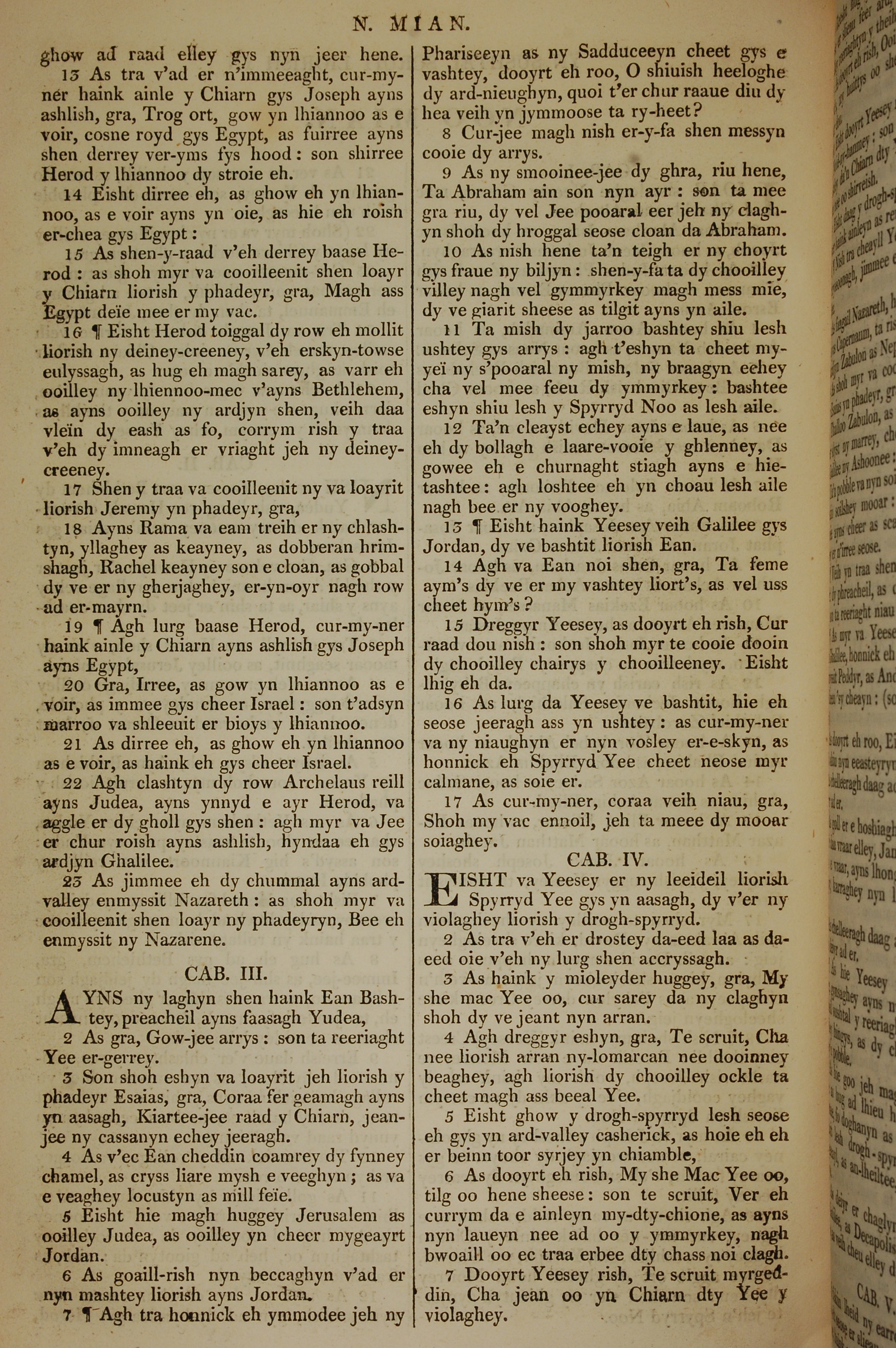 1819年曼岛语圣经 马太福音 2 章 13 节到 4 章 7 节