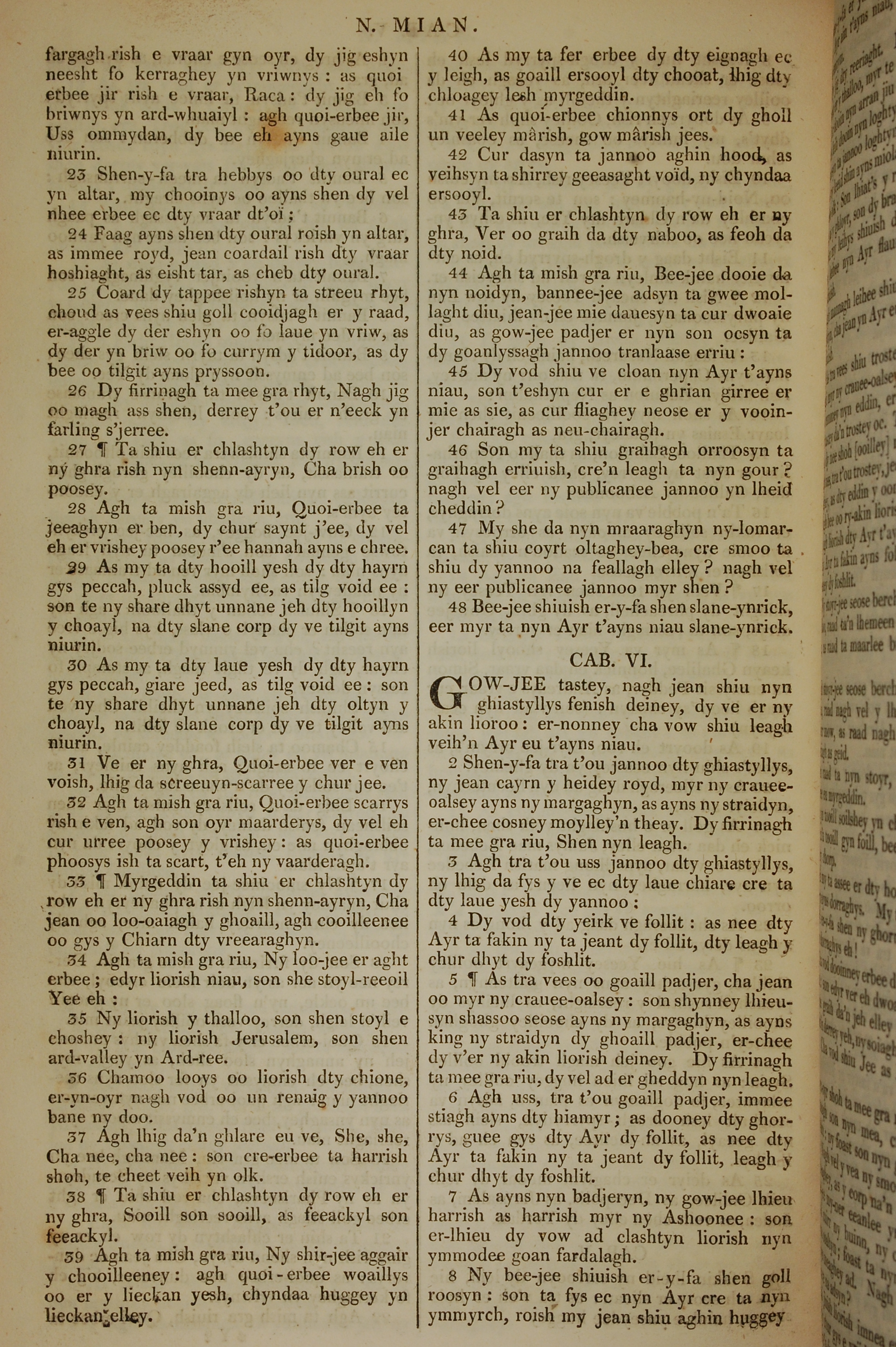 1819年曼岛语圣经 马太福音 5 章 23 节到 6 章 8 节