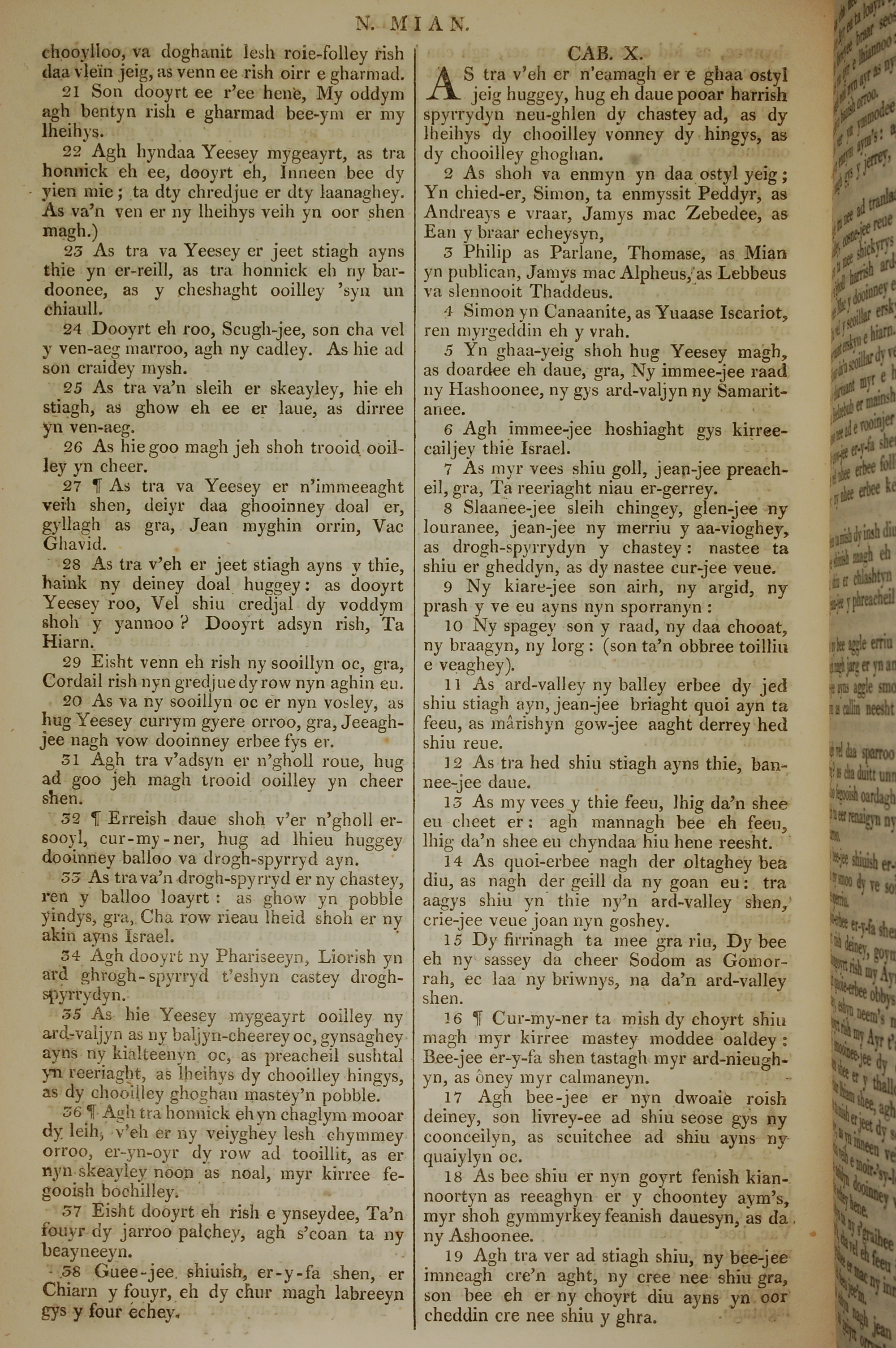 1819年曼岛语圣经 马太福音 9 章 21 节到 10 章 19 节
