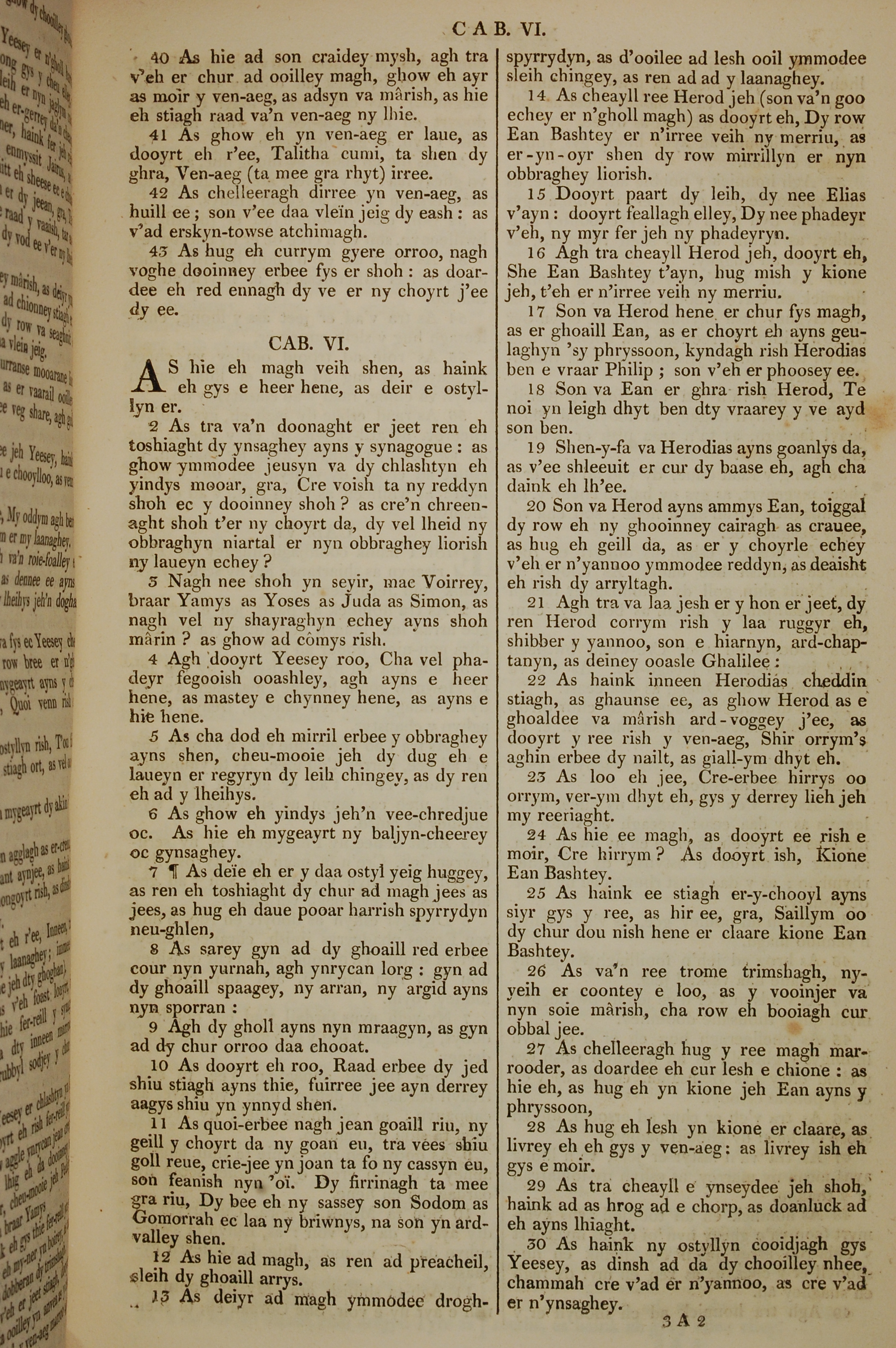1819年曼岛语圣经 马可福音 5 章 40 节到 6 章 30 节
