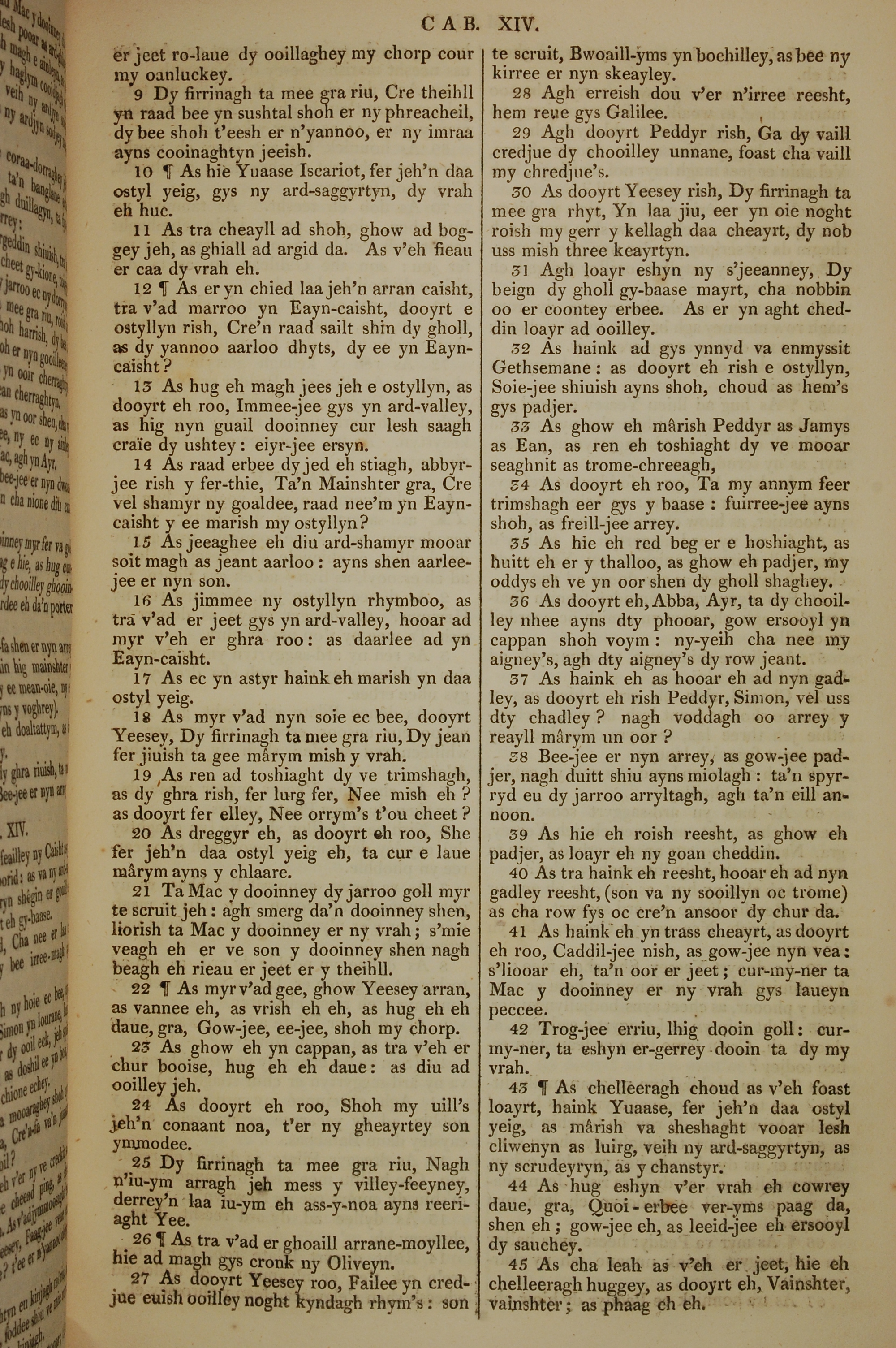 1819年曼岛语圣经 马可福音 14 章 9 节到 14 章 45 节