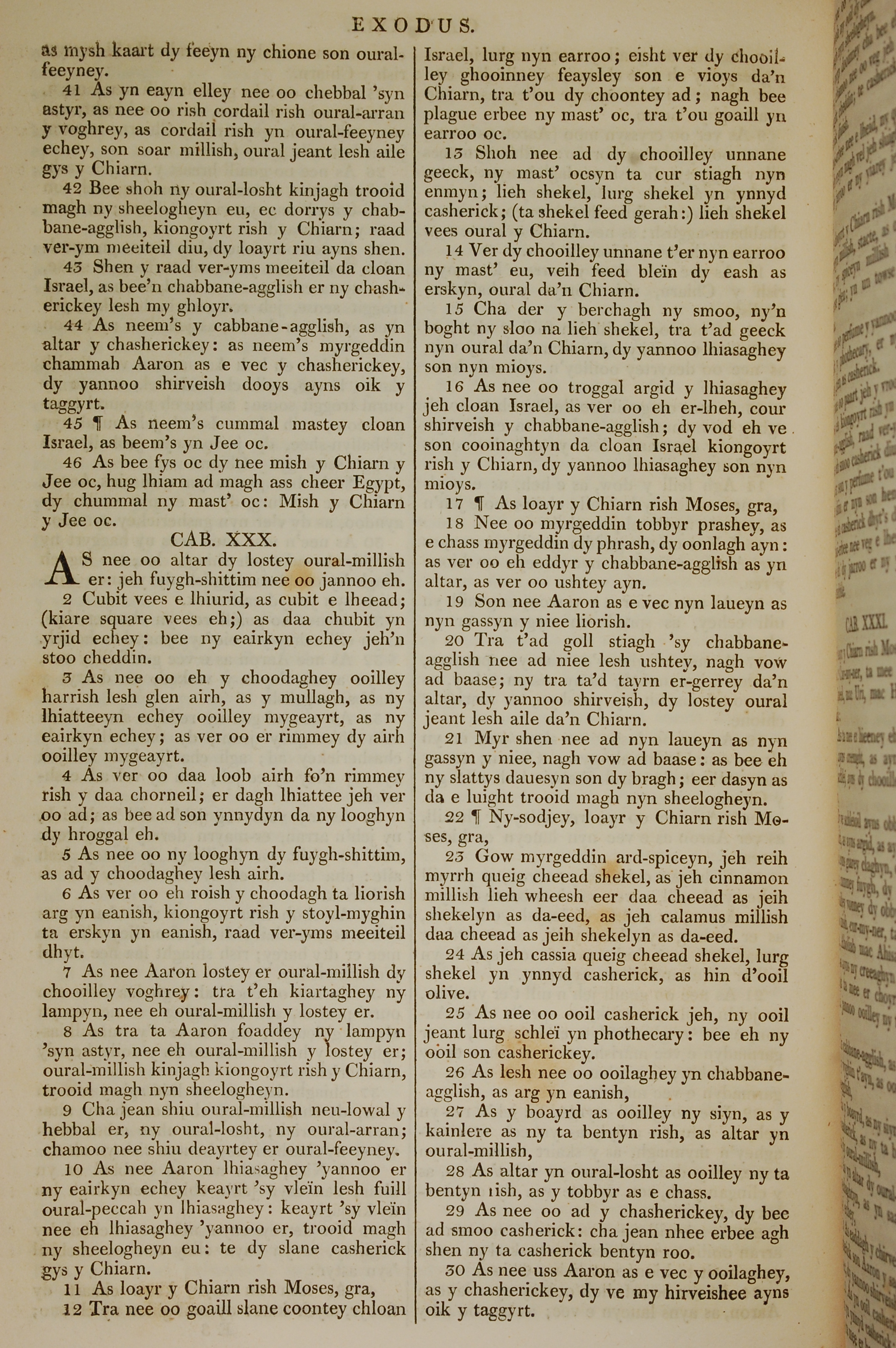 1819年曼岛语圣经 出埃及记 29 章 41 节到 30 章 30 节