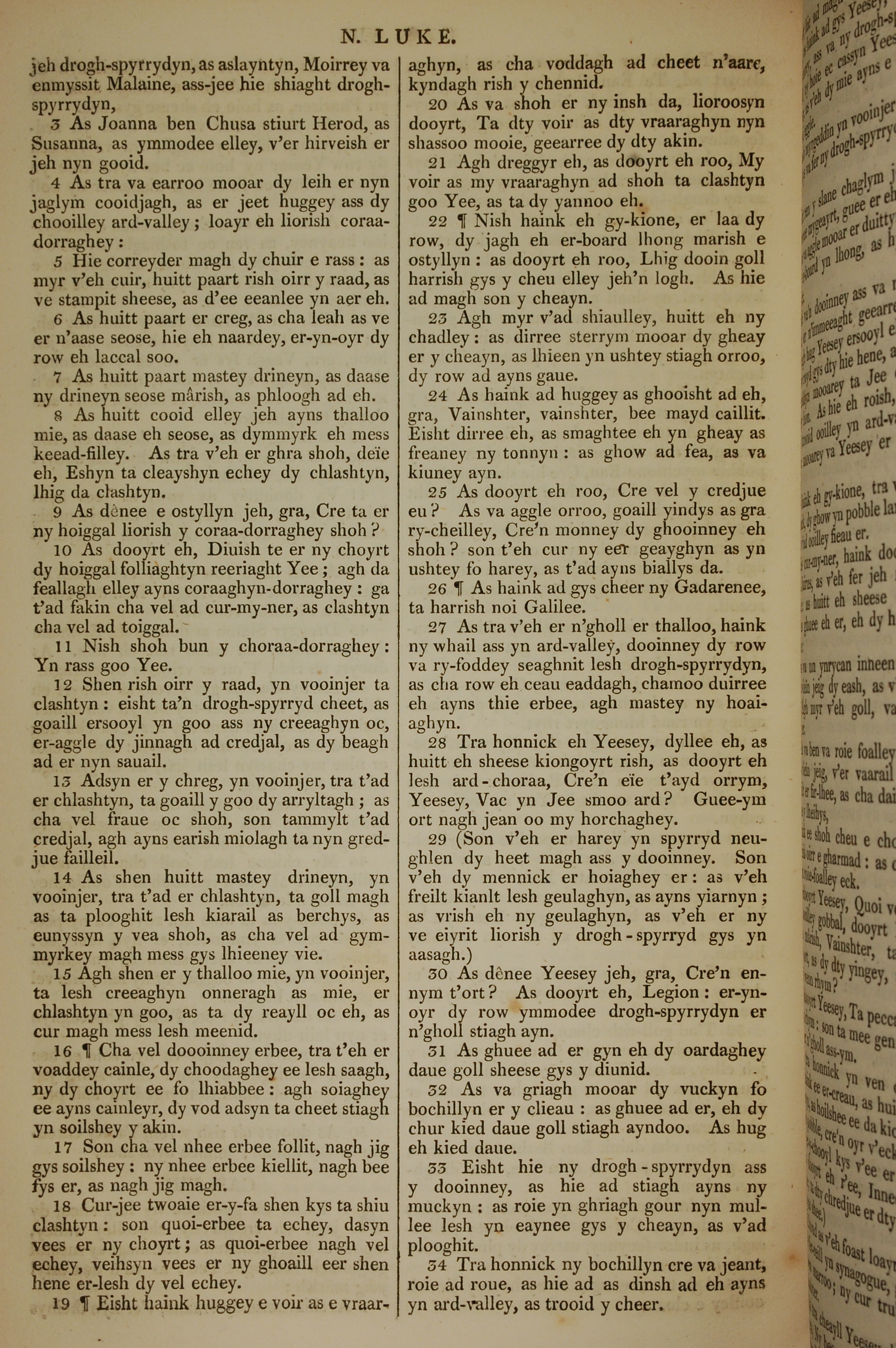 1819年曼岛语圣经 路加福音 8 章 3 节到 8 章 34 节
