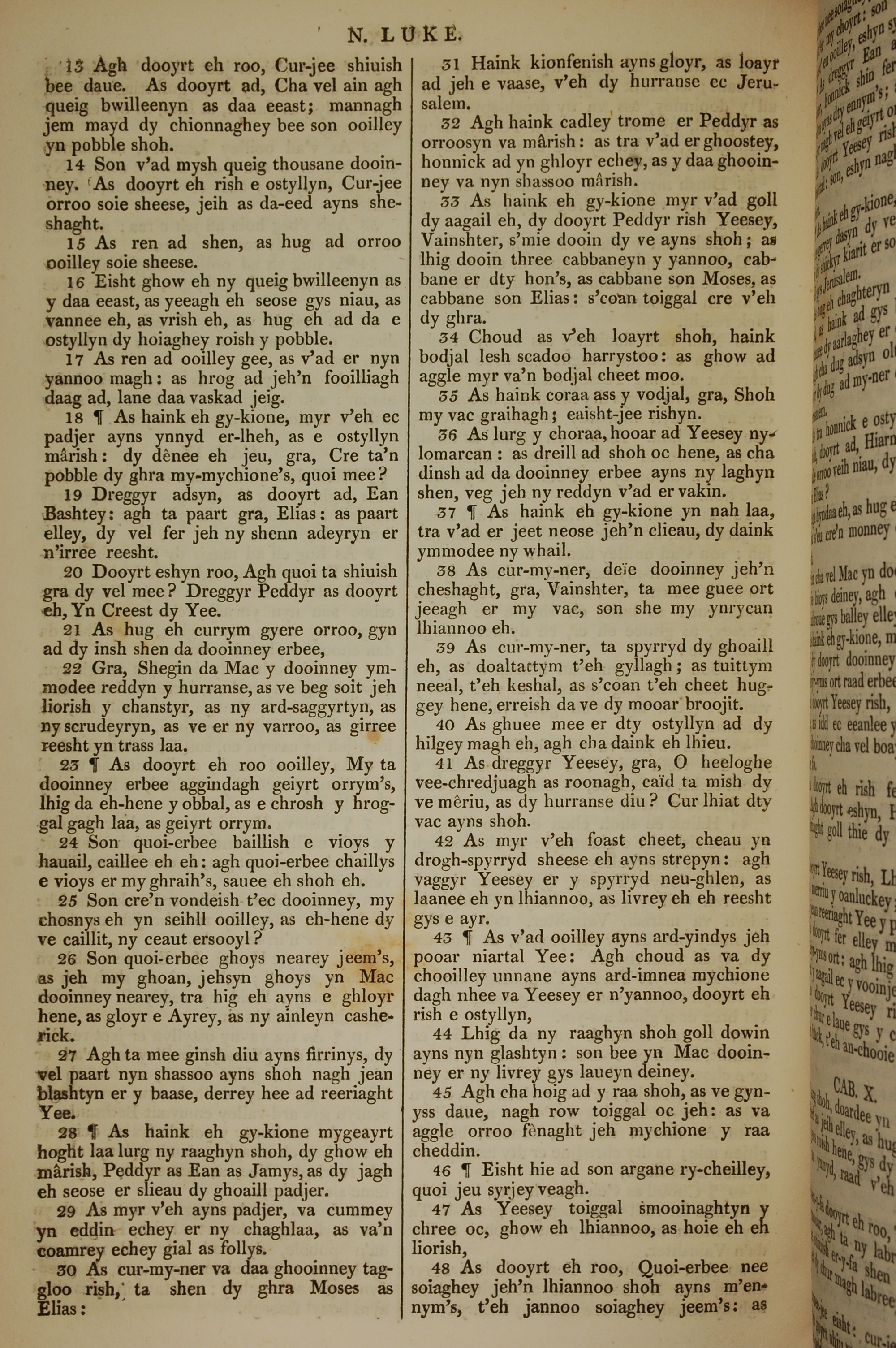 1819年曼岛语圣经 路加福音 9 章 13 节到 9 章 48 节