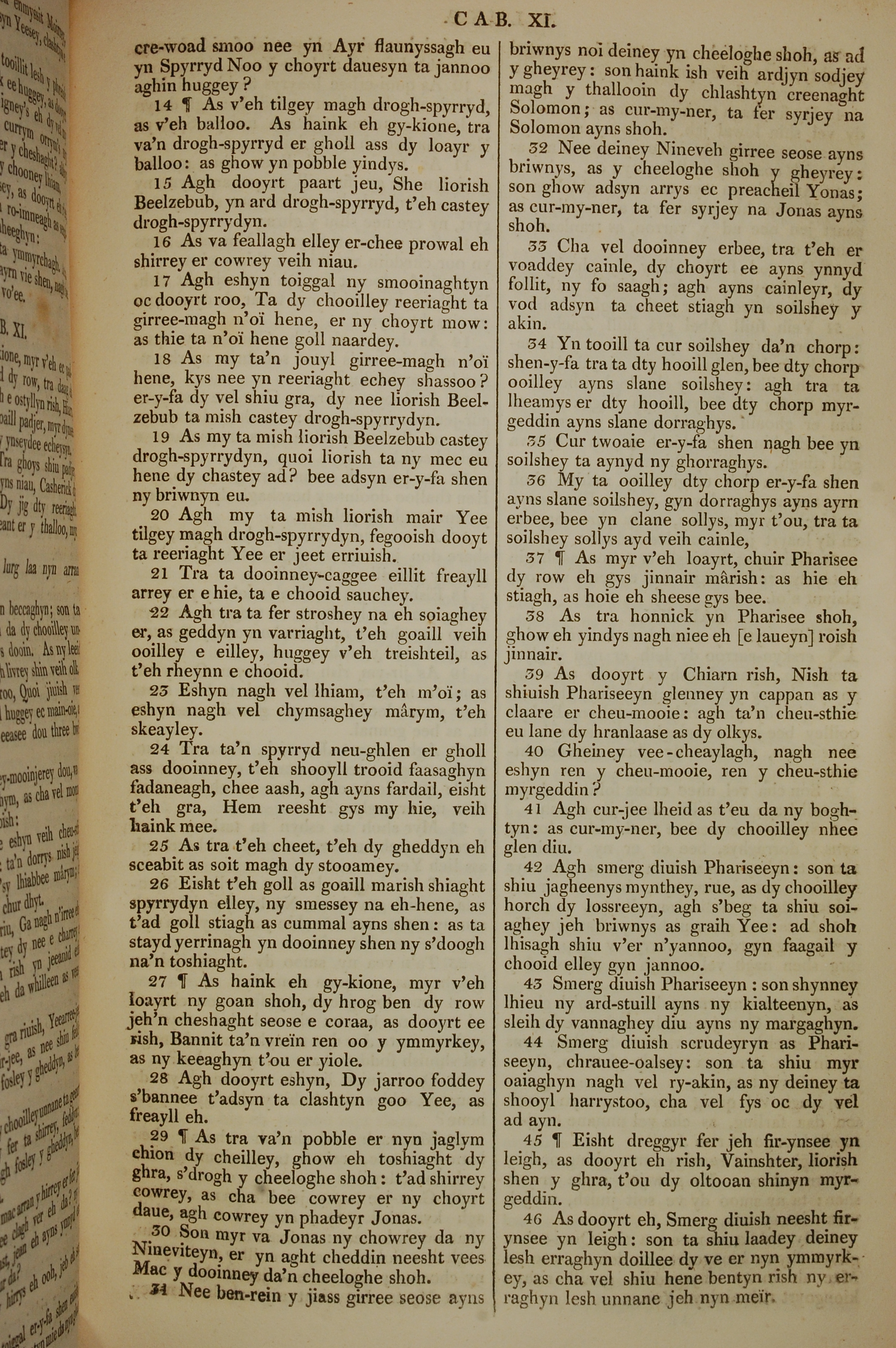 1819年曼岛语圣经 路加福音 11 章 14 节到 11 章 46 节