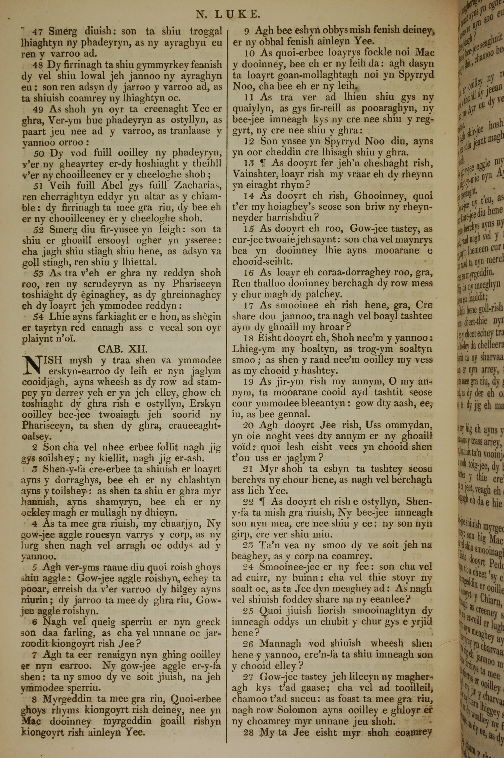 1819年曼岛语圣经 路加福音 11 章 47 节到 12 章 28 节