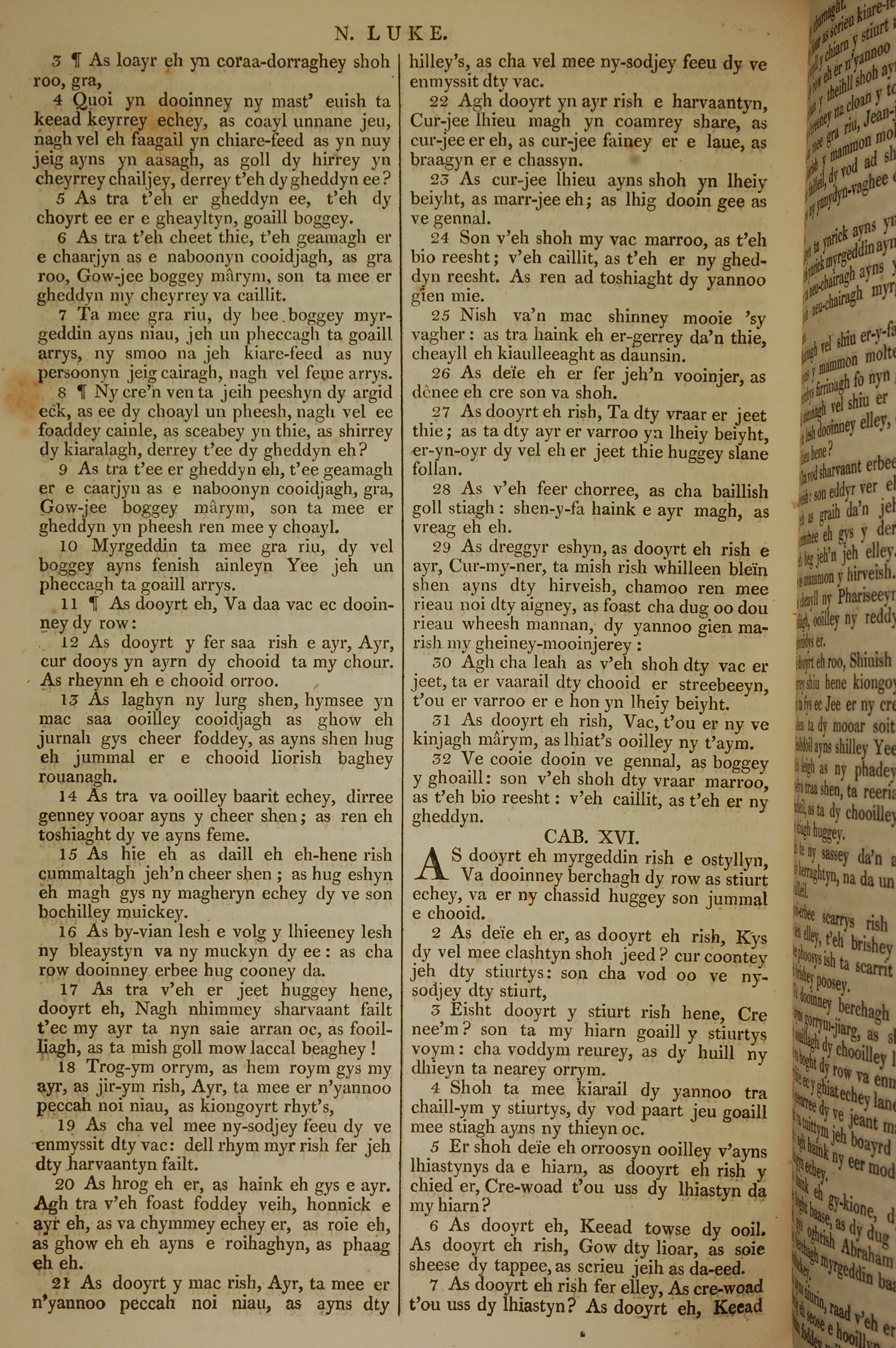 1819年曼岛语圣经 路加福音 15 章 3 节到 16 章 7 节