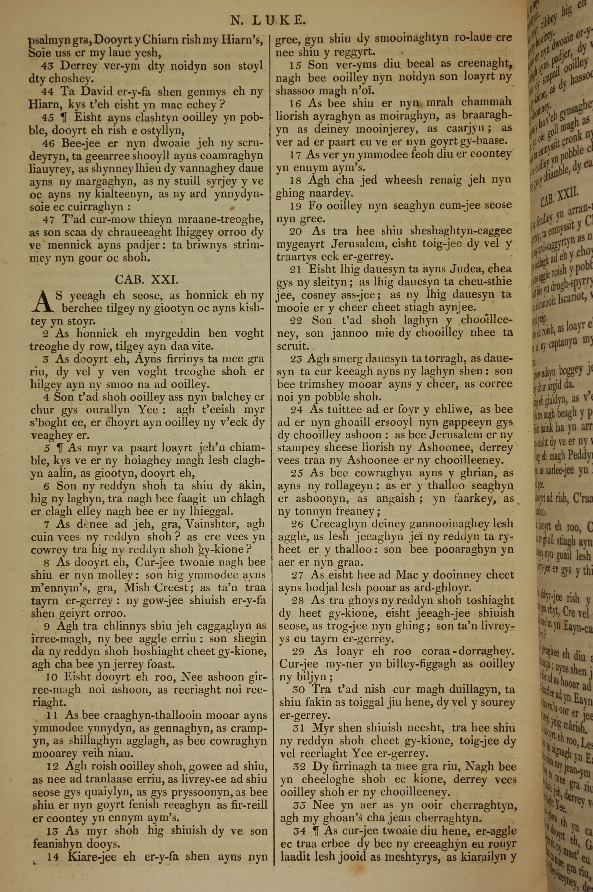 1819年曼岛语圣经 路加福音 20 章 43 节到 21 章 34 节