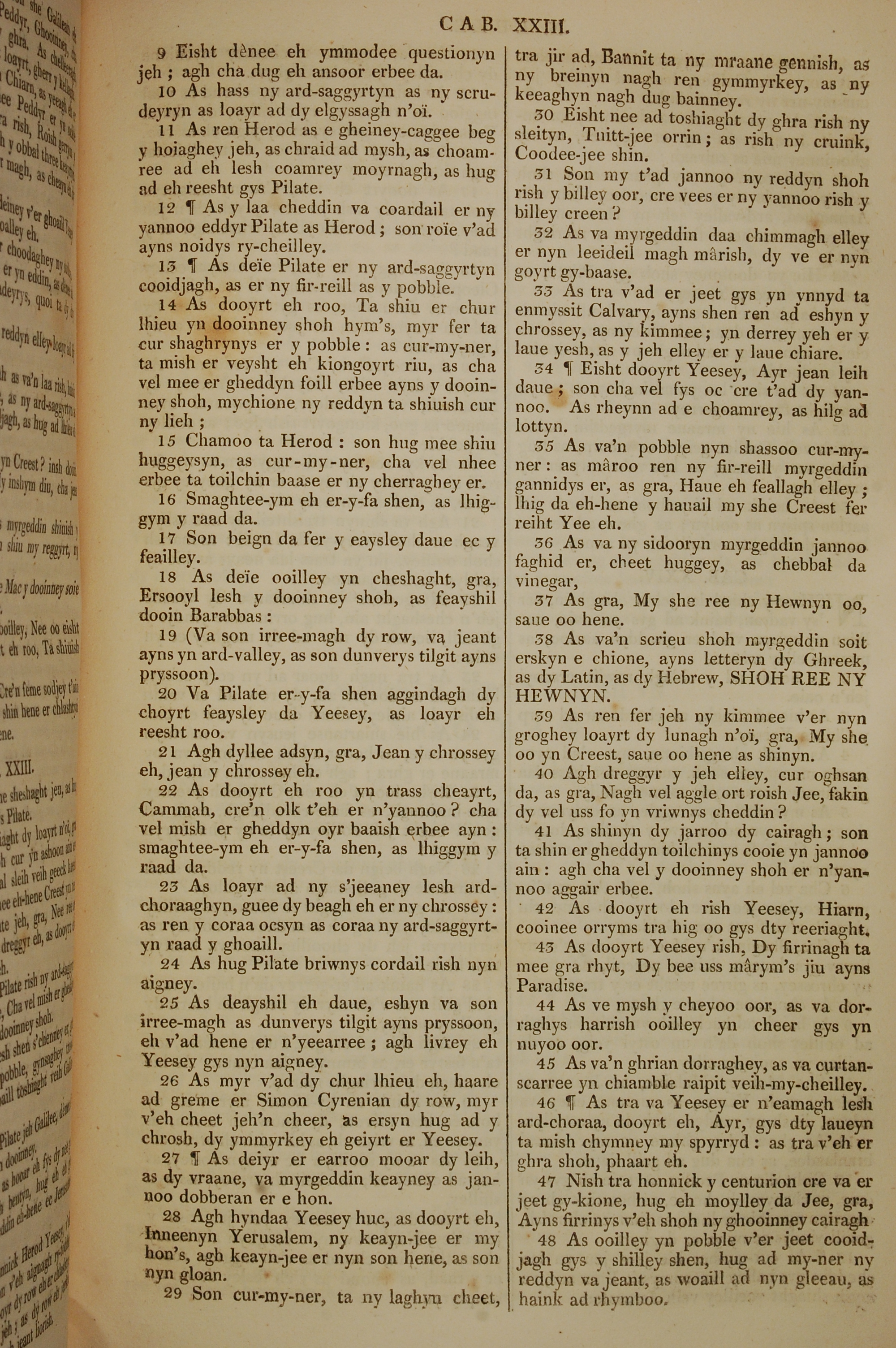 1819年曼岛语圣经 路加福音 23 章 9 节到 23 章 48 节