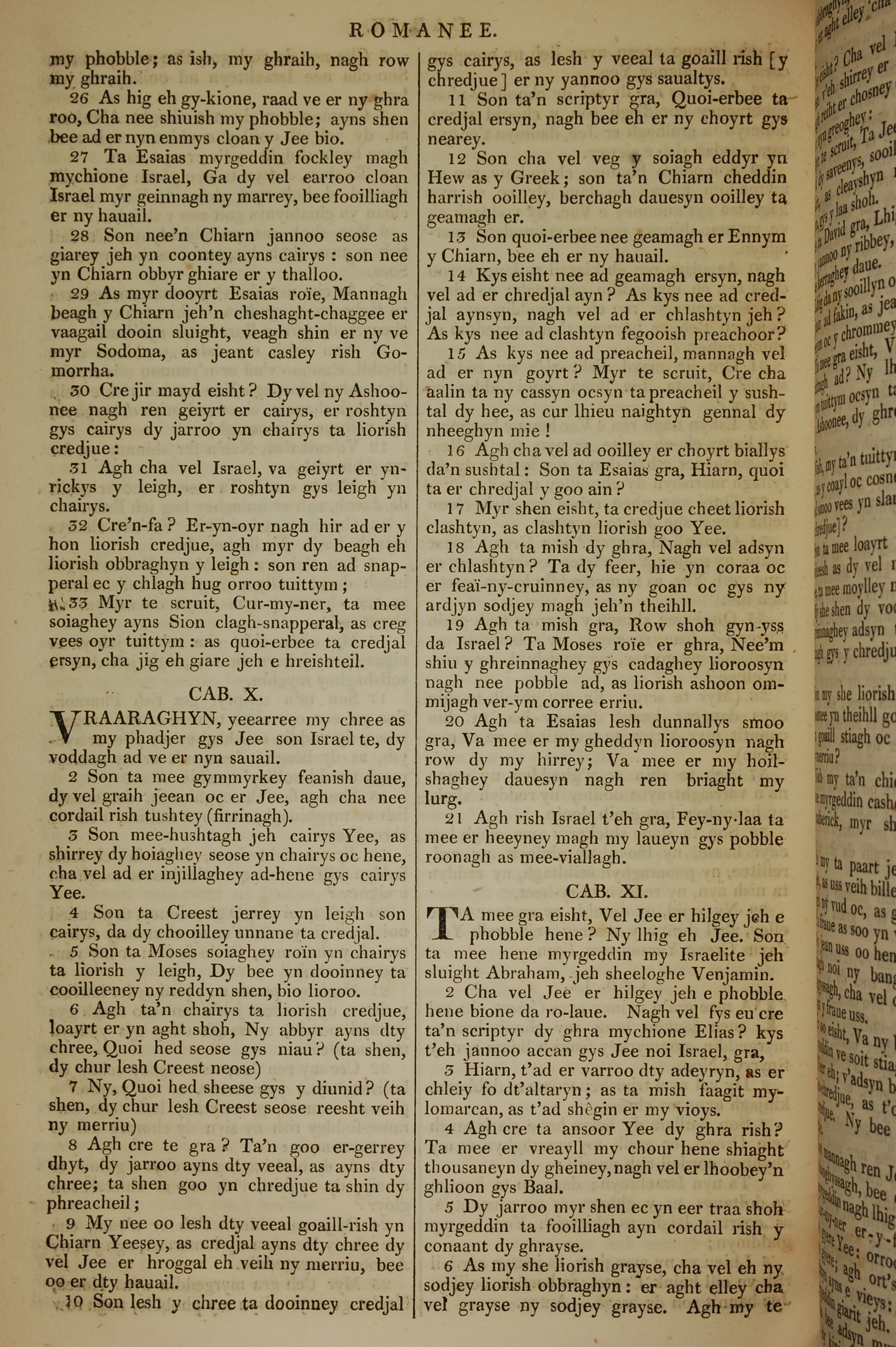 1819年曼岛语圣经 罗马书 9 章 26 节到 11 章 6 节