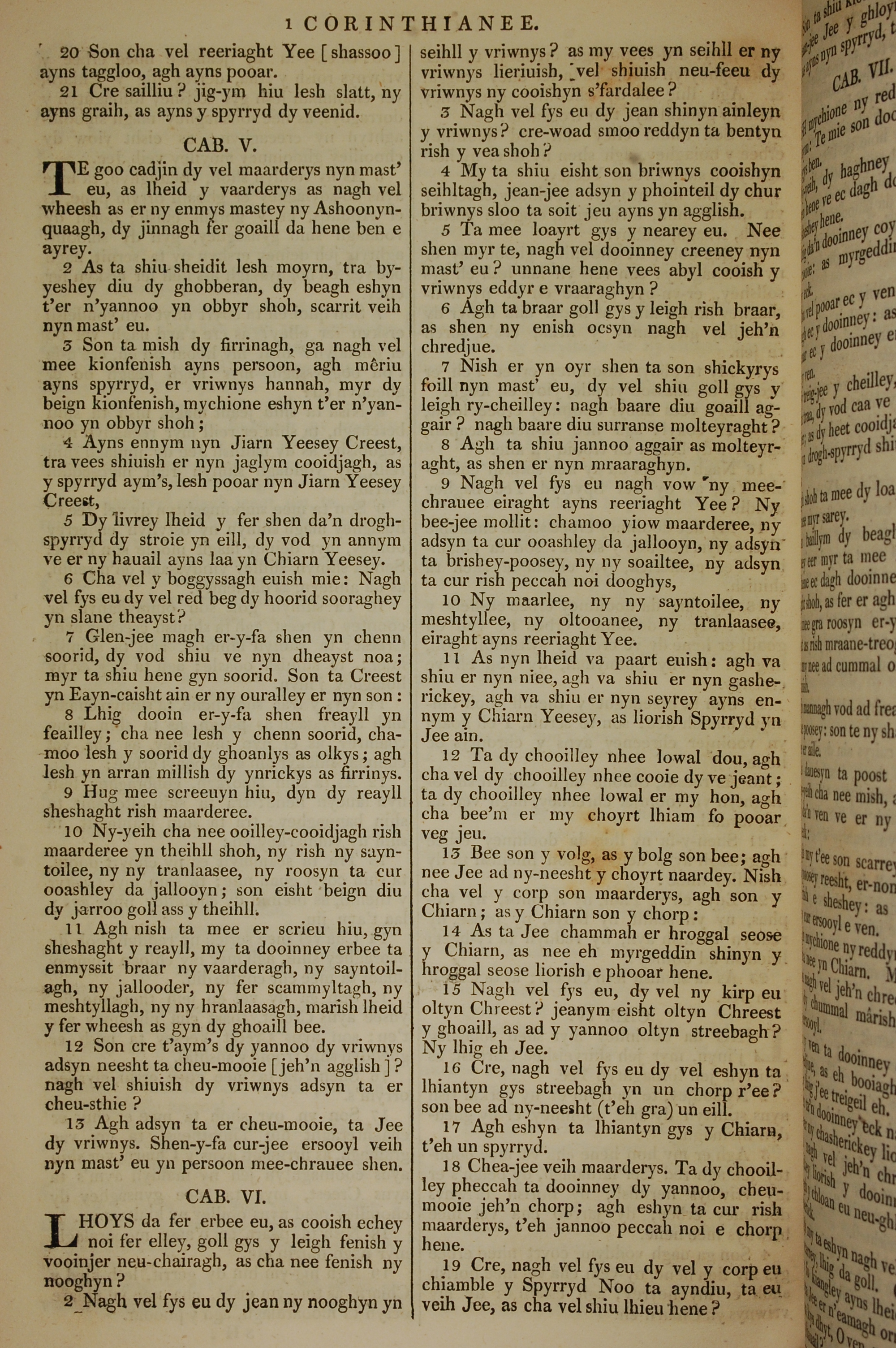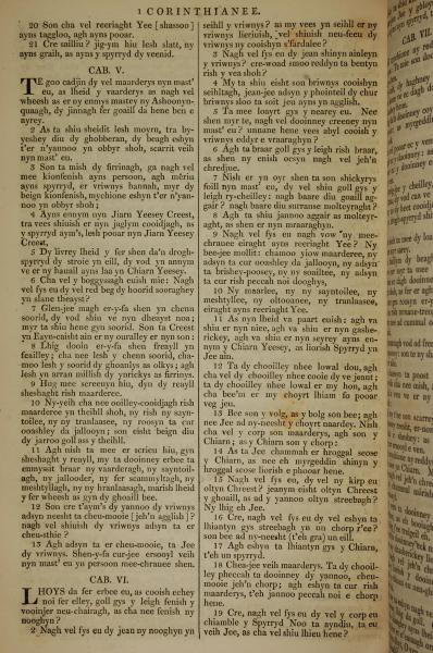 1819年曼岛语圣经 哥林多前书 4 章 20 节到 6 章 19 节