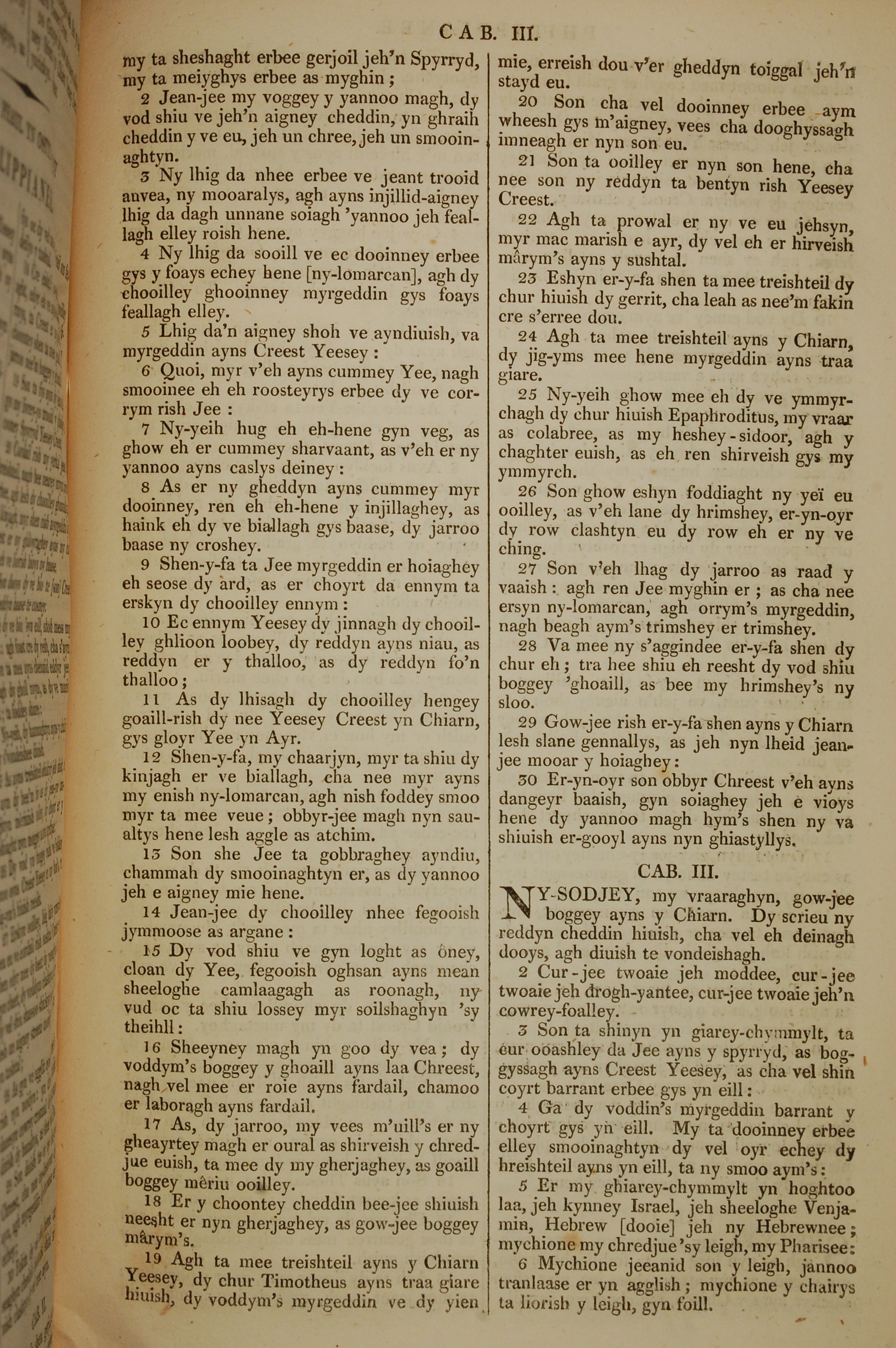 1819年曼岛语圣经 腓立比书 2 章 2 节到 3 章 6 节