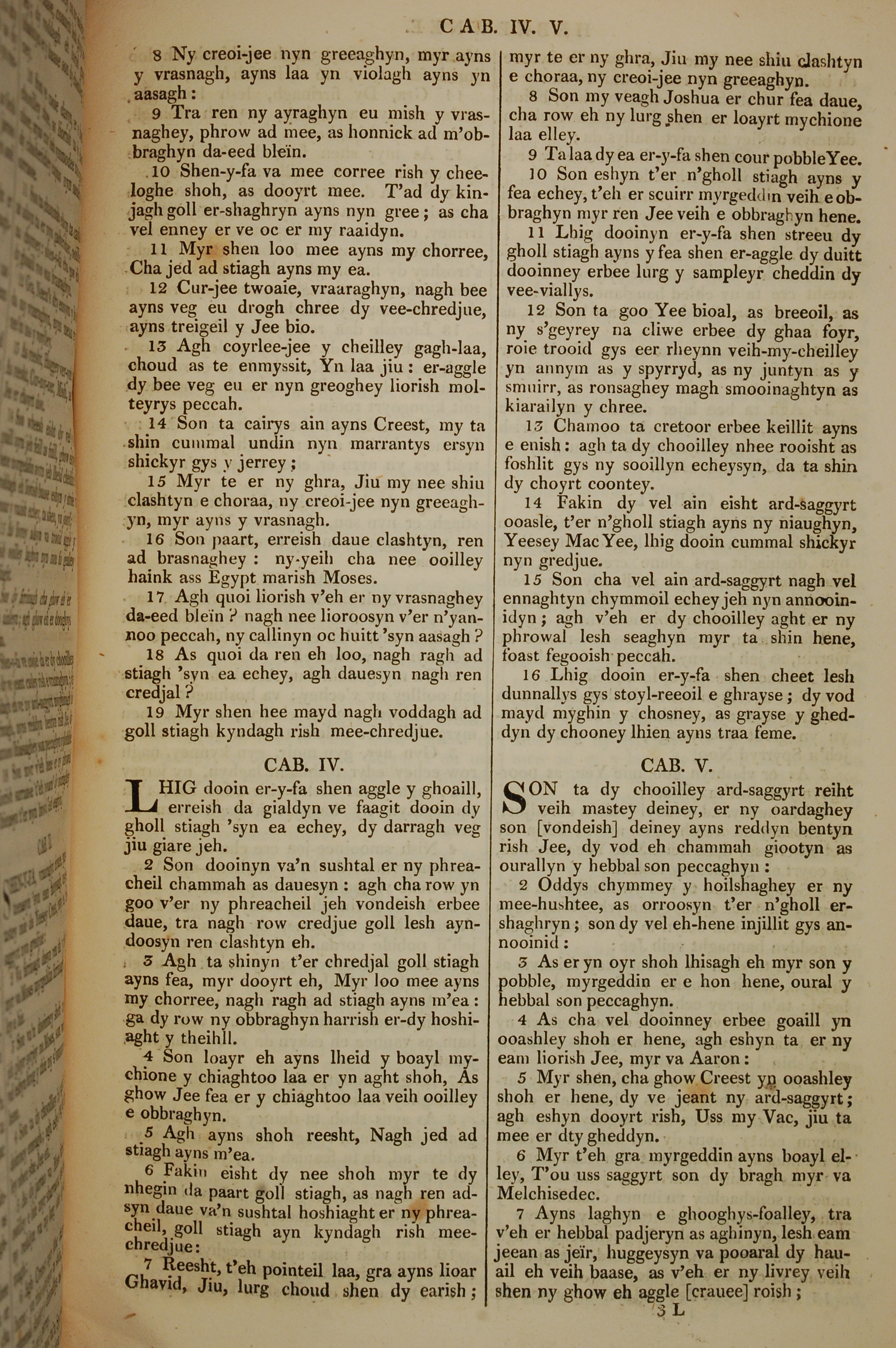 1819年曼岛语圣经 希伯来书 3 章 8 节到 5 章 7 节
