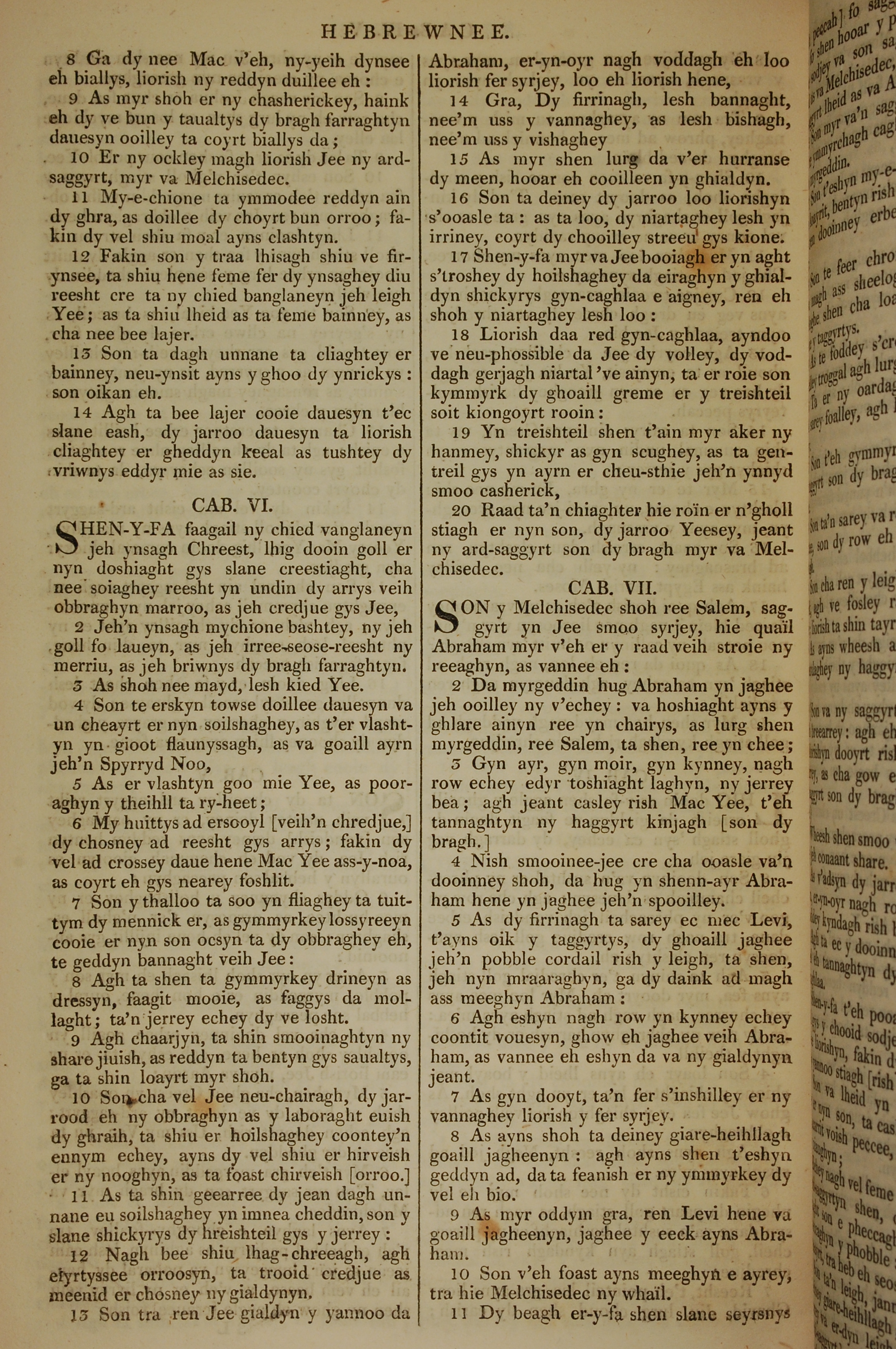 1819年曼岛语圣经 希伯来书 5 章 8 节到 7 章 11 节