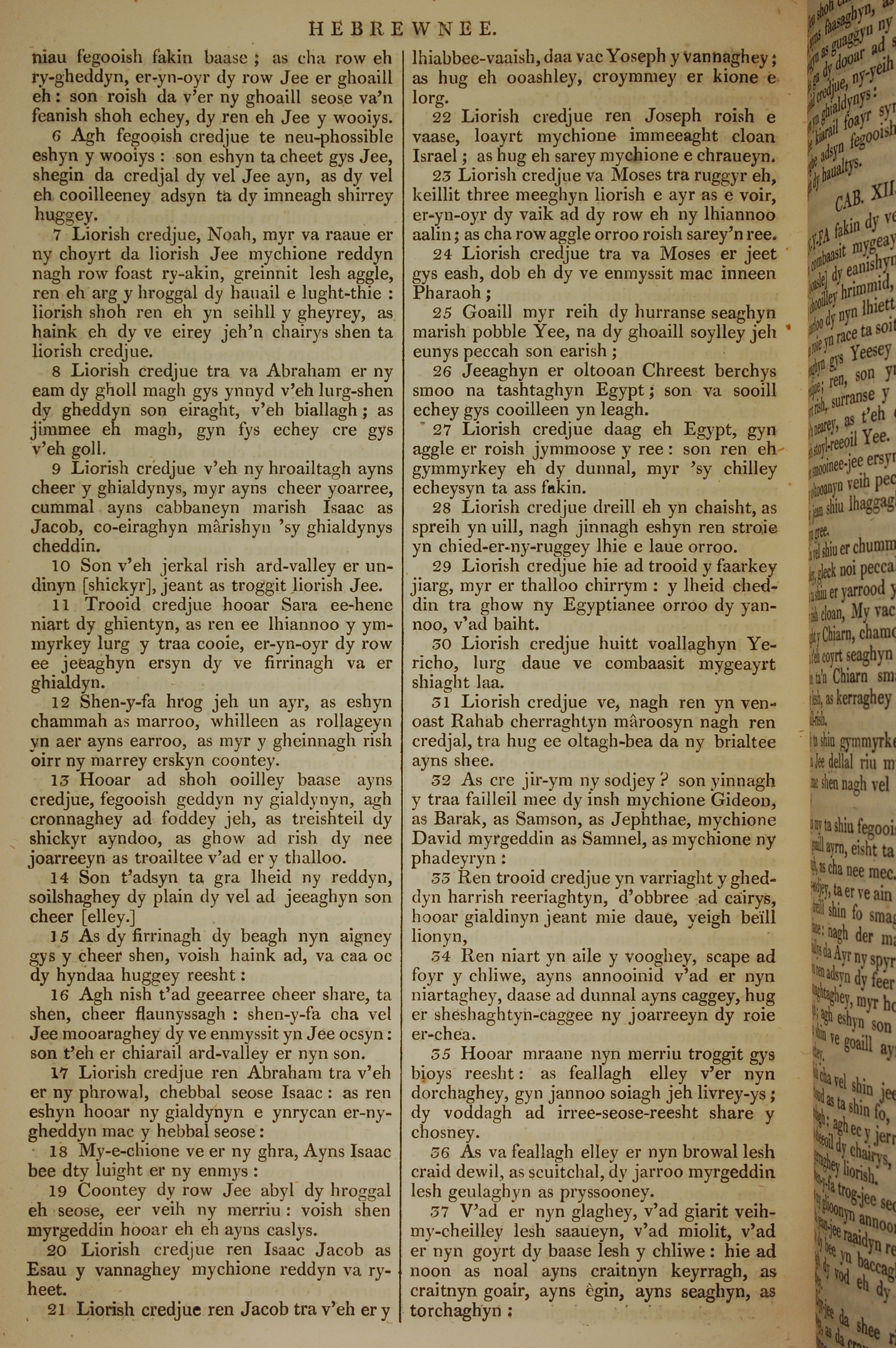 1819年曼岛语圣经 希伯来书 11 章 6 节到 11 章 37 节