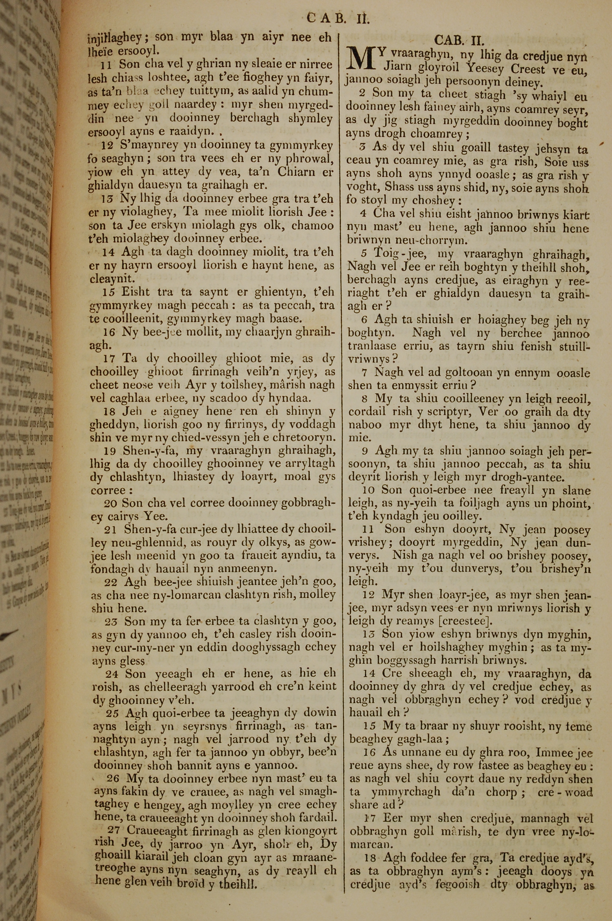 1819年曼岛语圣经 雅各书 1 章 11 节到 2 章 18 节