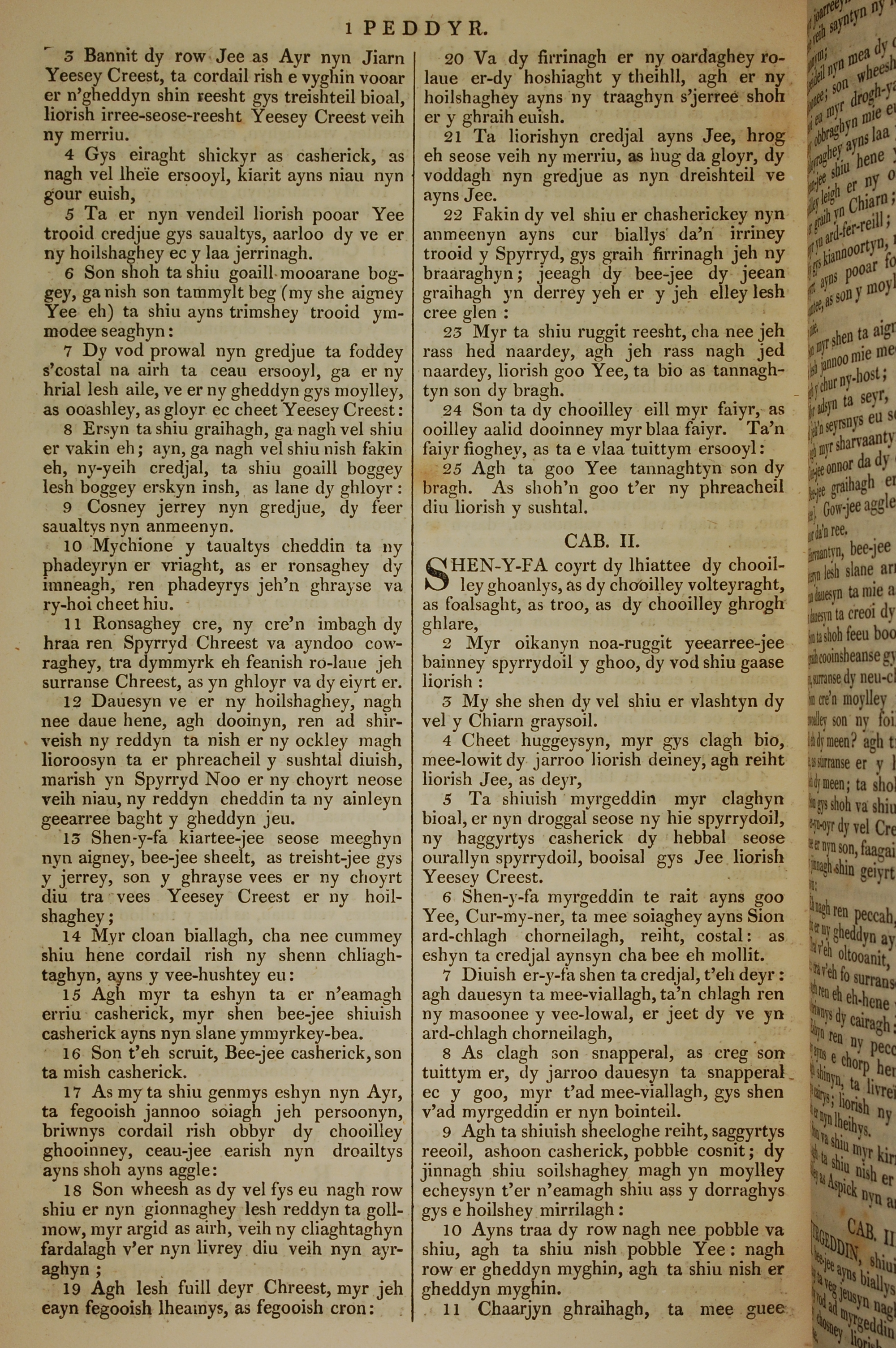 1819年曼岛语圣经 彼得前书 1 章 3 节到 2 章 11 节