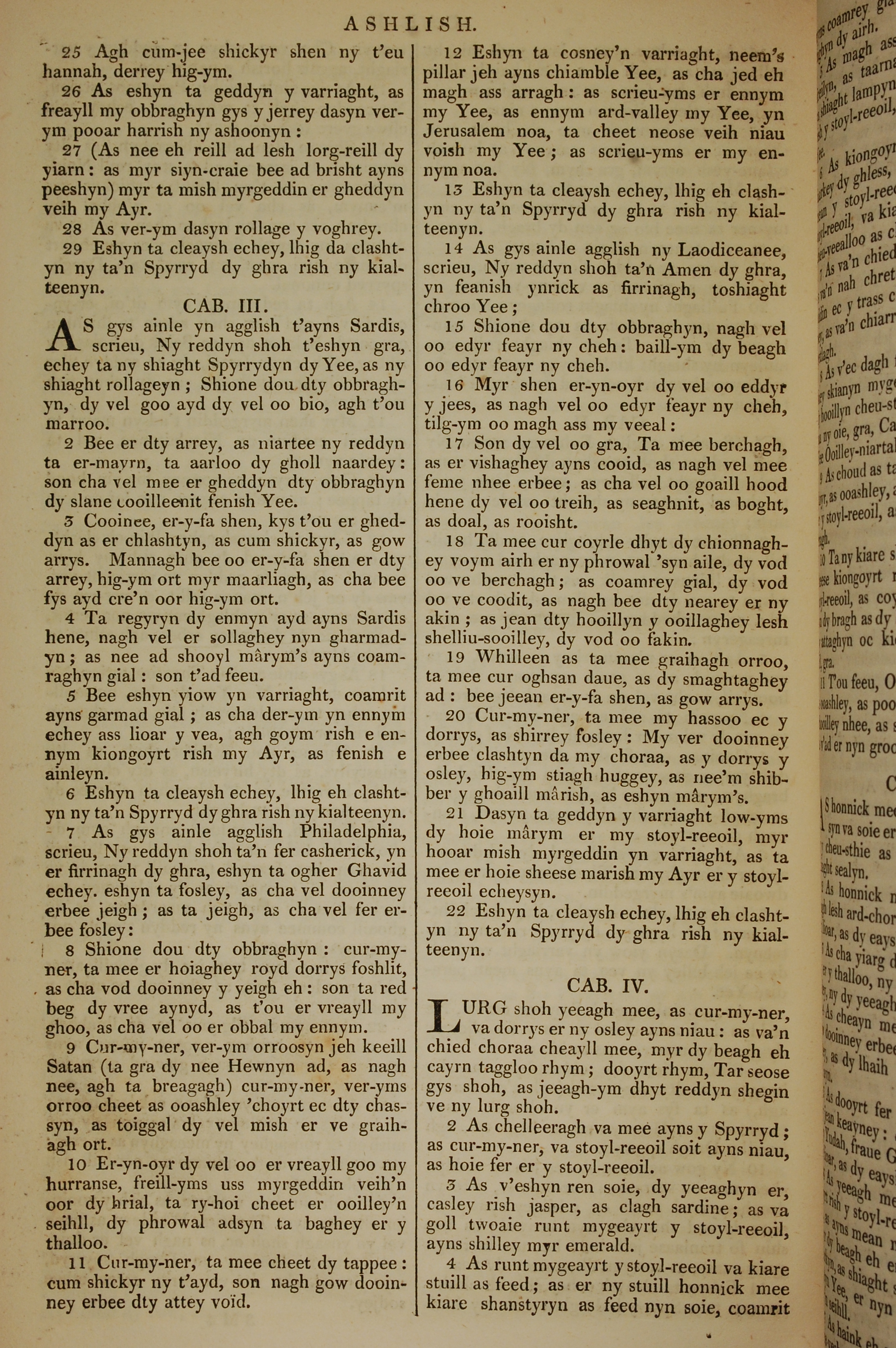 1819年曼岛语圣经 启示录 2 章 25 节到 4 章 4 节