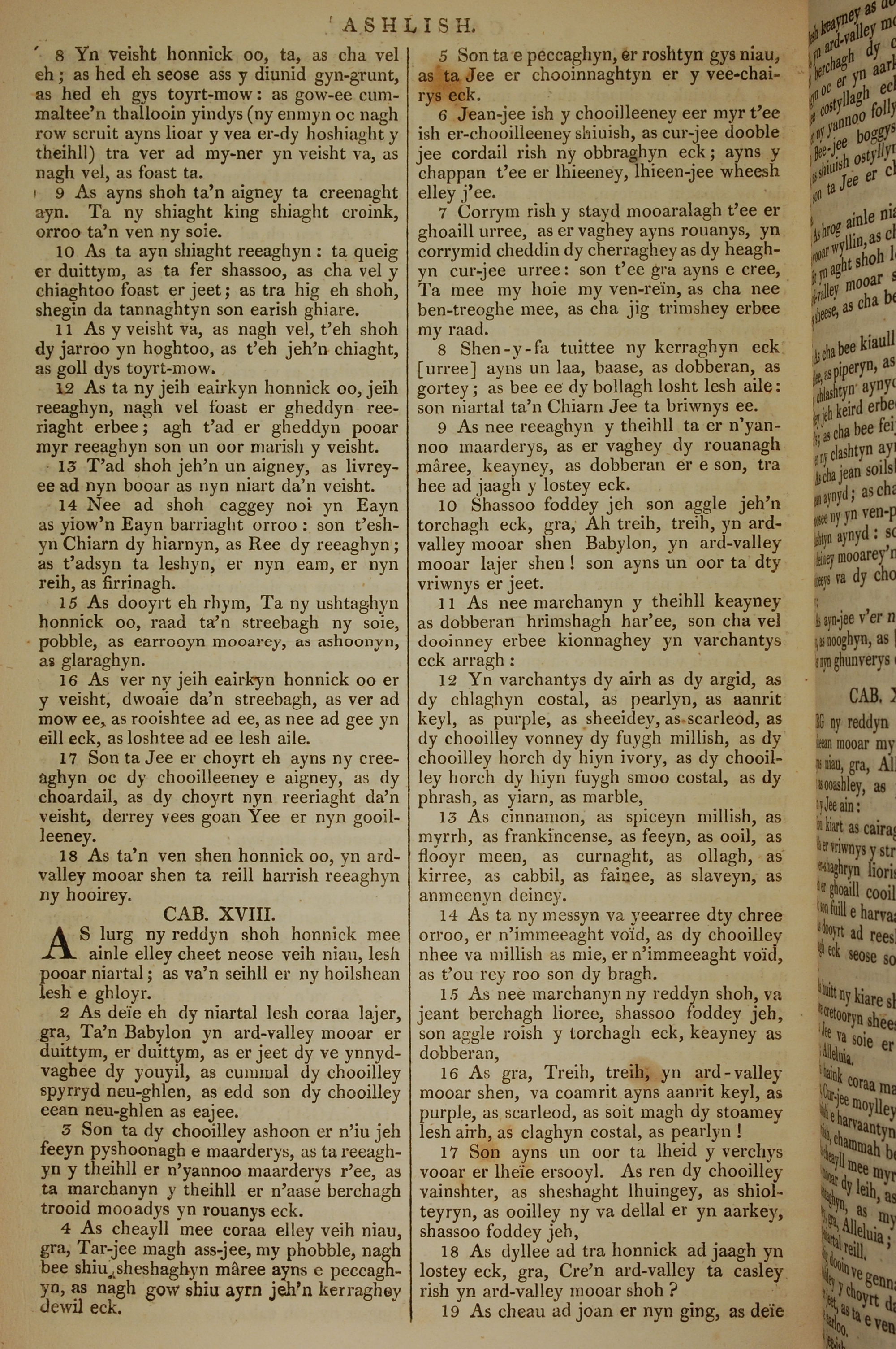 1819年曼岛语圣经 启示录 17 章 8 节到 18 章 19 节