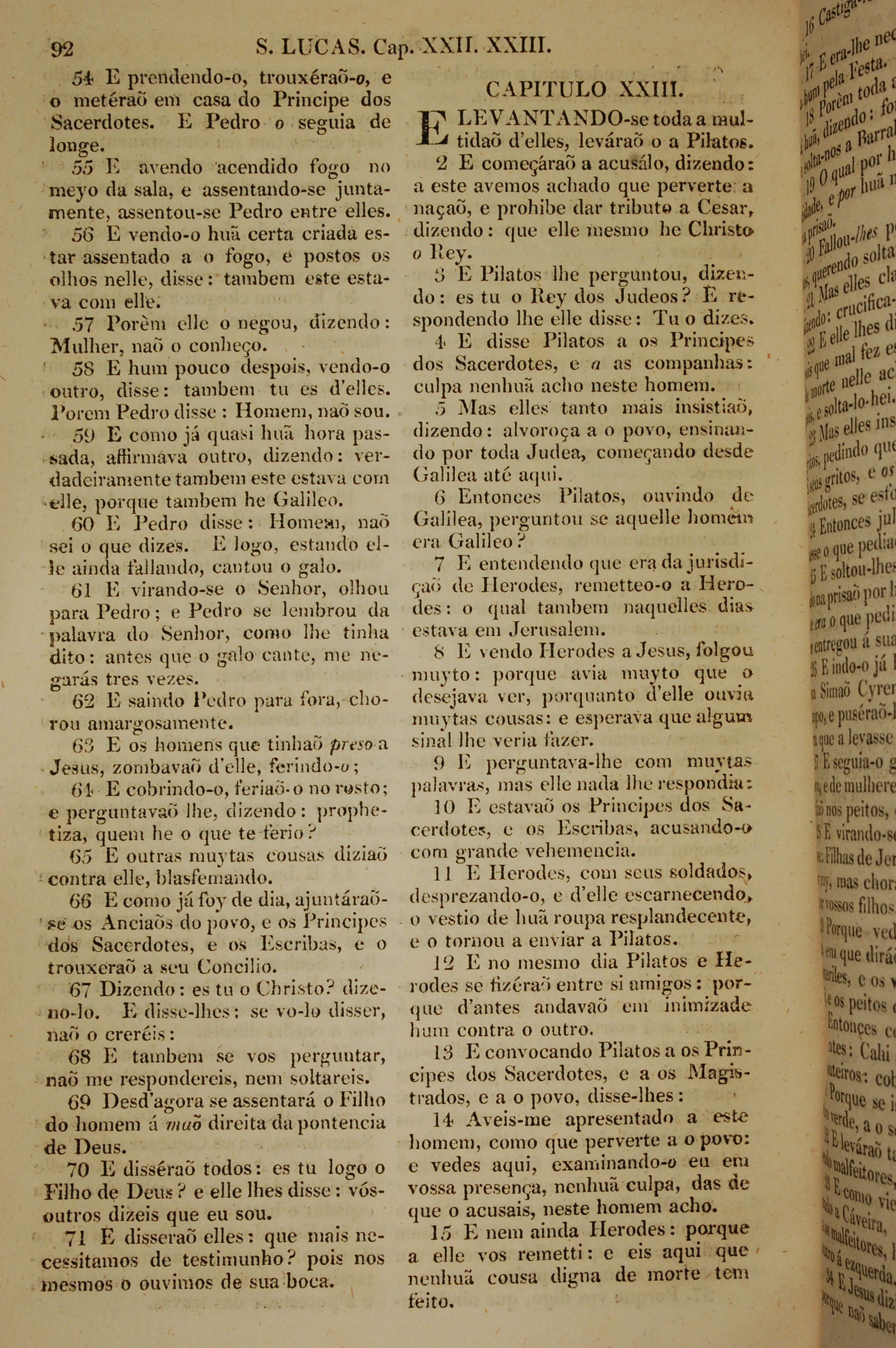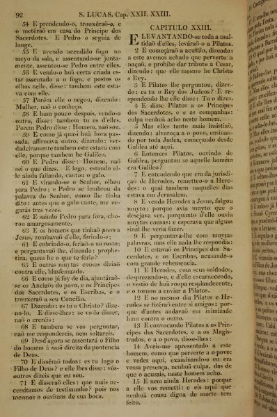 1819年葡萄牙语新约全书 路加福音 22 章 54 节到 23 章 15 节