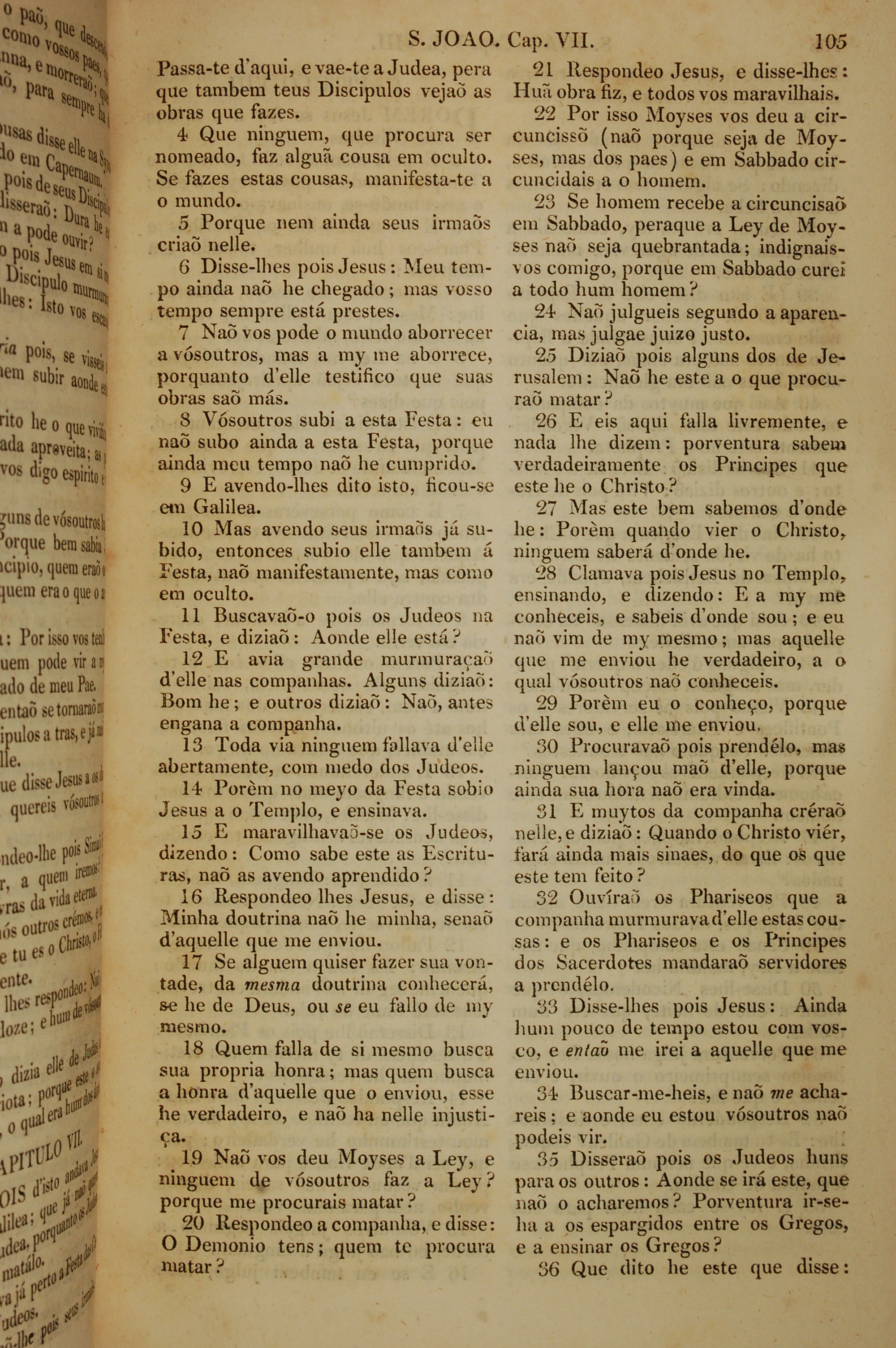 1819年葡萄牙语新约全书 约翰福音 7 章 4 节到 7 章 36 节