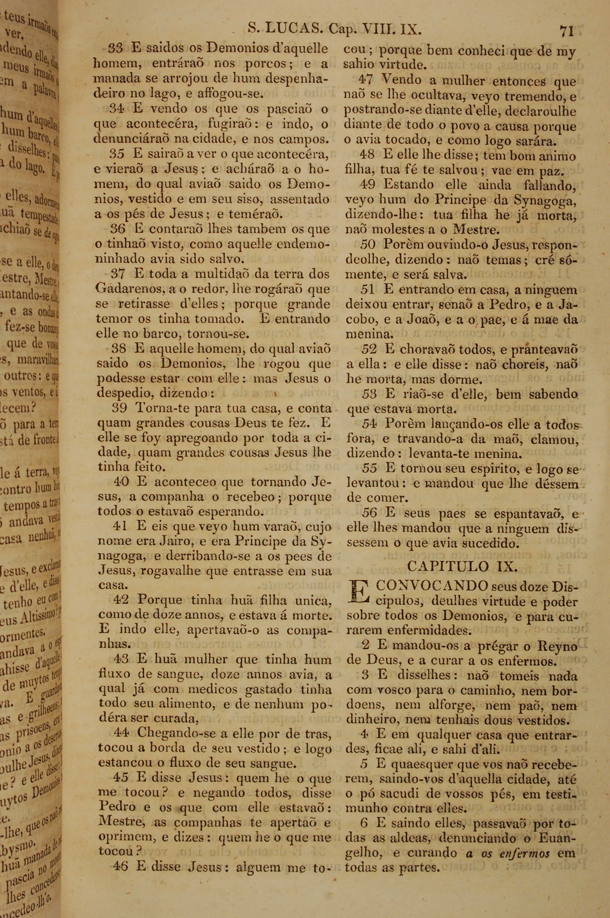 1819年葡萄牙语新约全书 路加福音 8 章 33 节到 9 章 6 节
