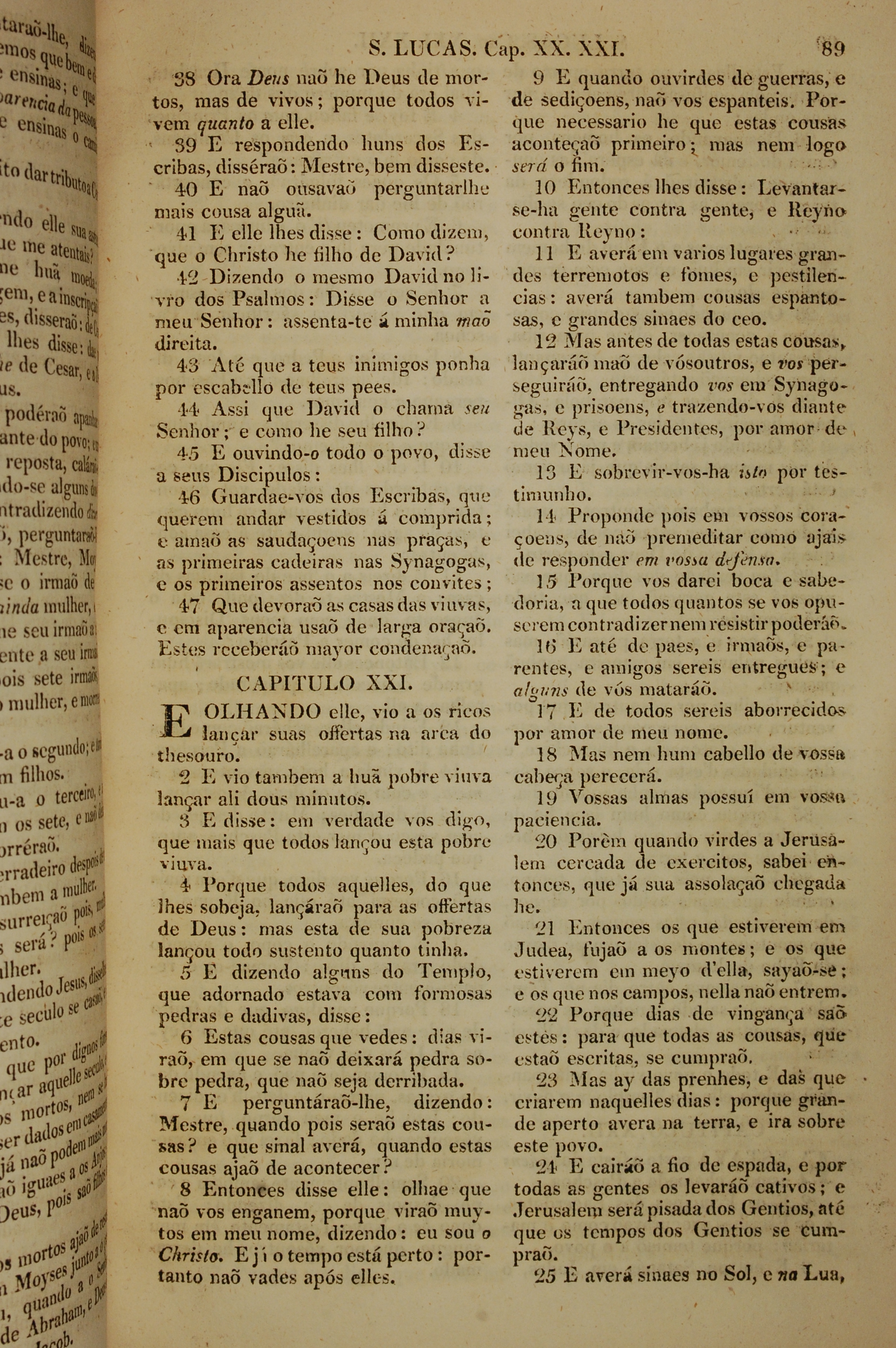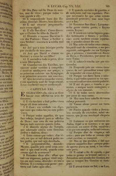 1819年葡萄牙语新约全书 路加福音 20 章 38 节到 21 章 25 节