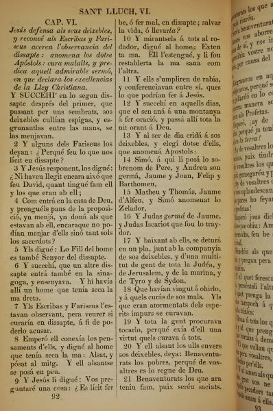 1835年加泰罗尼亚语新约全书 路加福音 6 章 1 节到 6 章 21 节