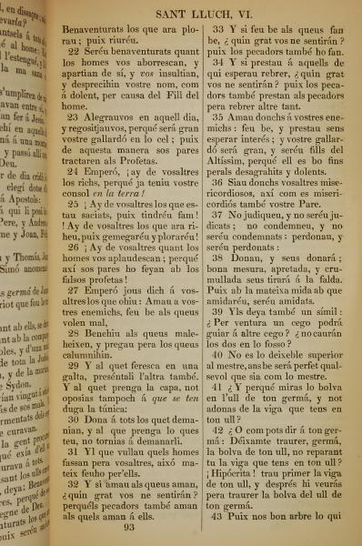 1835年加泰罗尼亚语新约全书 路加福音 6 章 22 节到 6 章 43 节