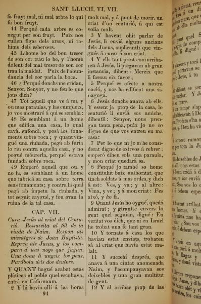1835年加泰罗尼亚语新约全书 路加福音 6 章 44 节到 7 章 12 节