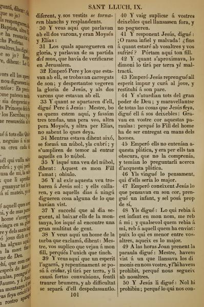1835年加泰罗尼亚语新约全书 路加福音 9 章 30 节到 9 章 50 节